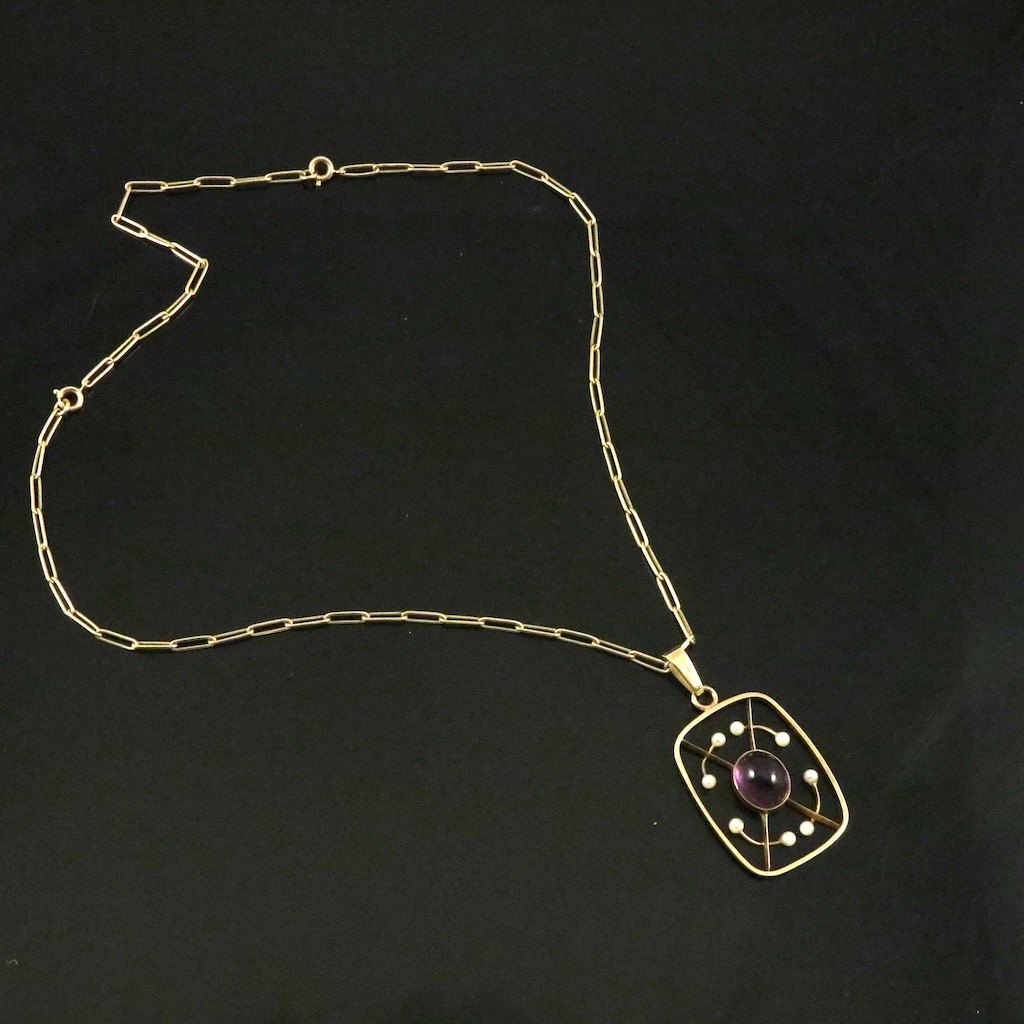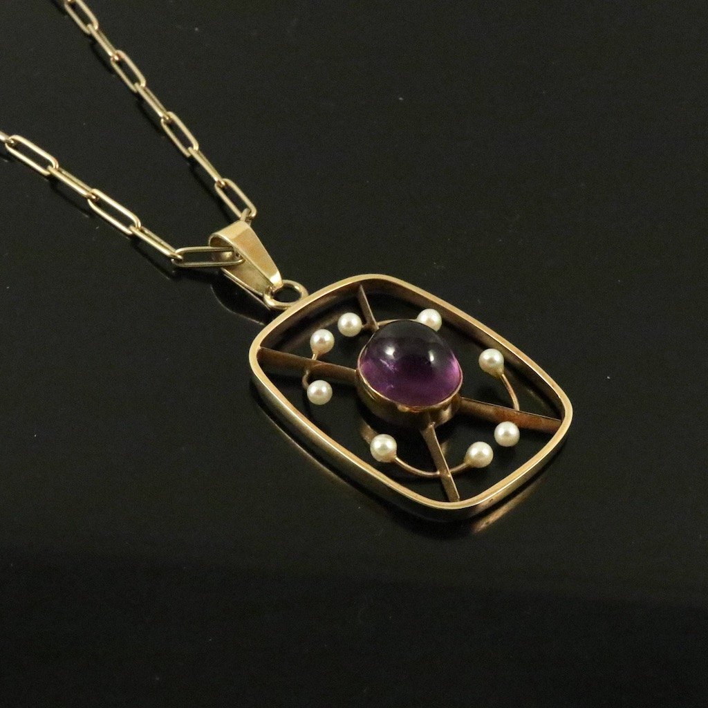 Bent Exner (1932-2006). Halssmykke i 14k guld med ametyst of perler.