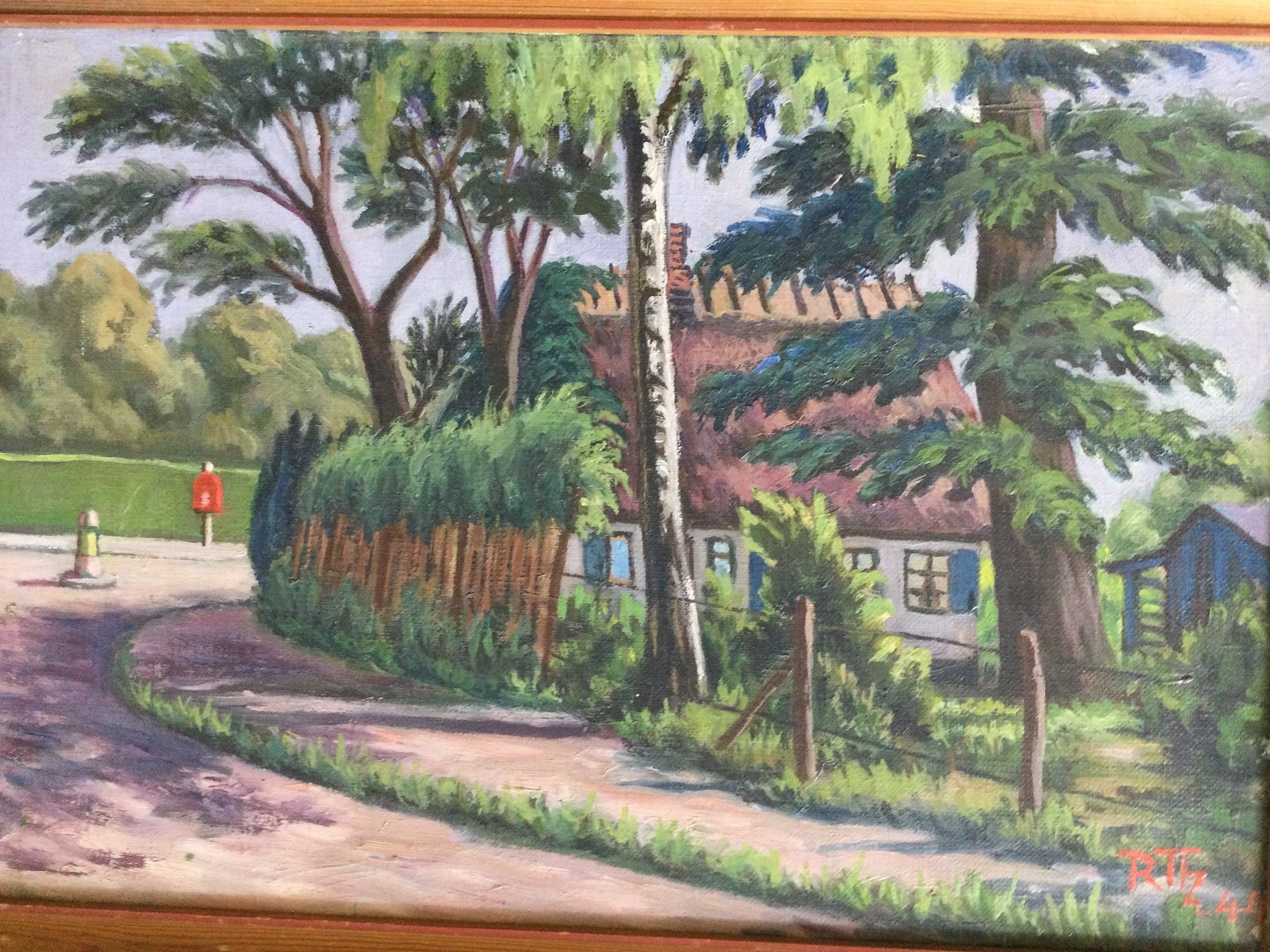 Maleri fra Ordrup med "Mor Karens Hus" 1944.