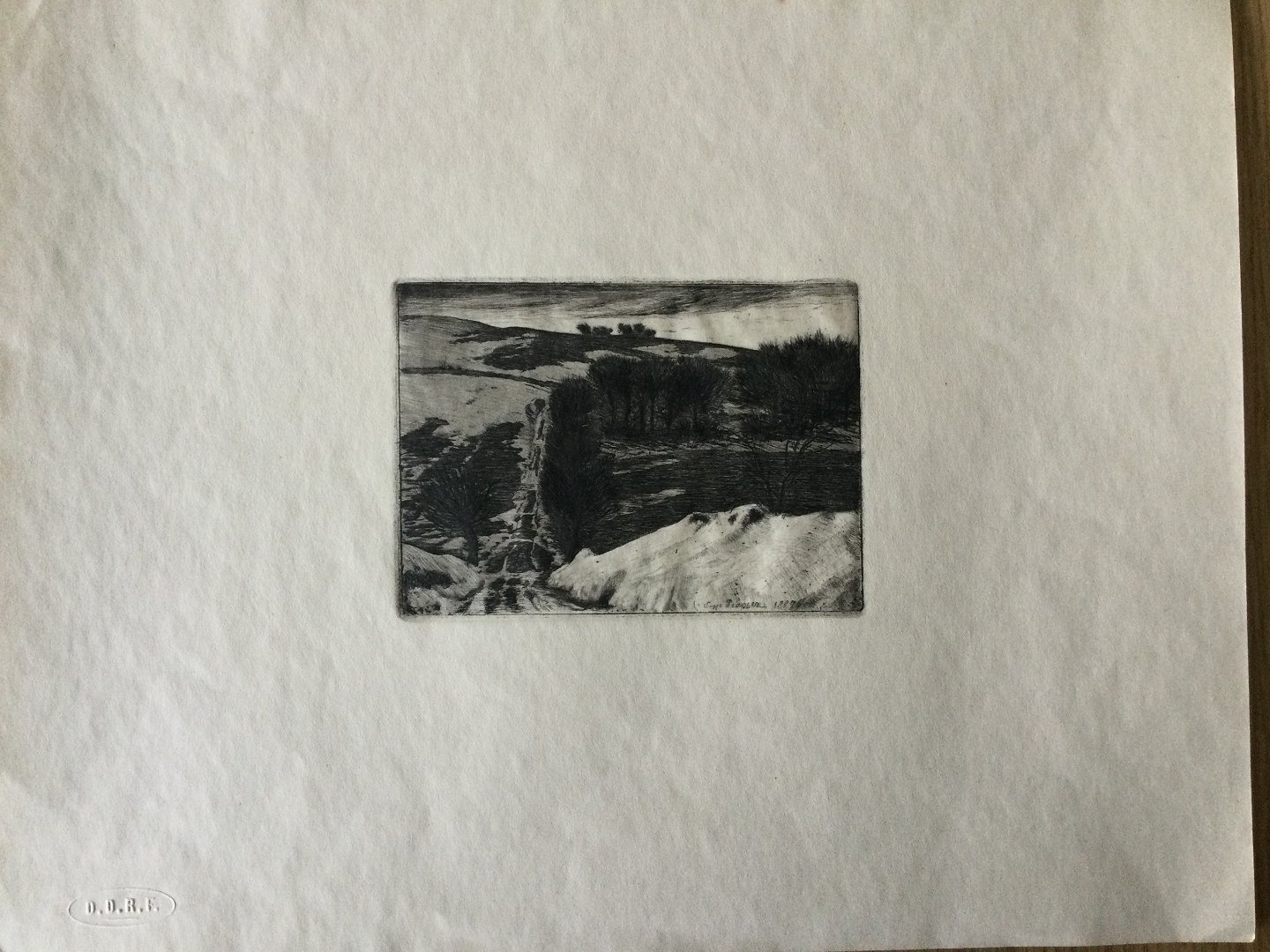 Radering af Viggo Pedersen 1887 - Bakke med sne.