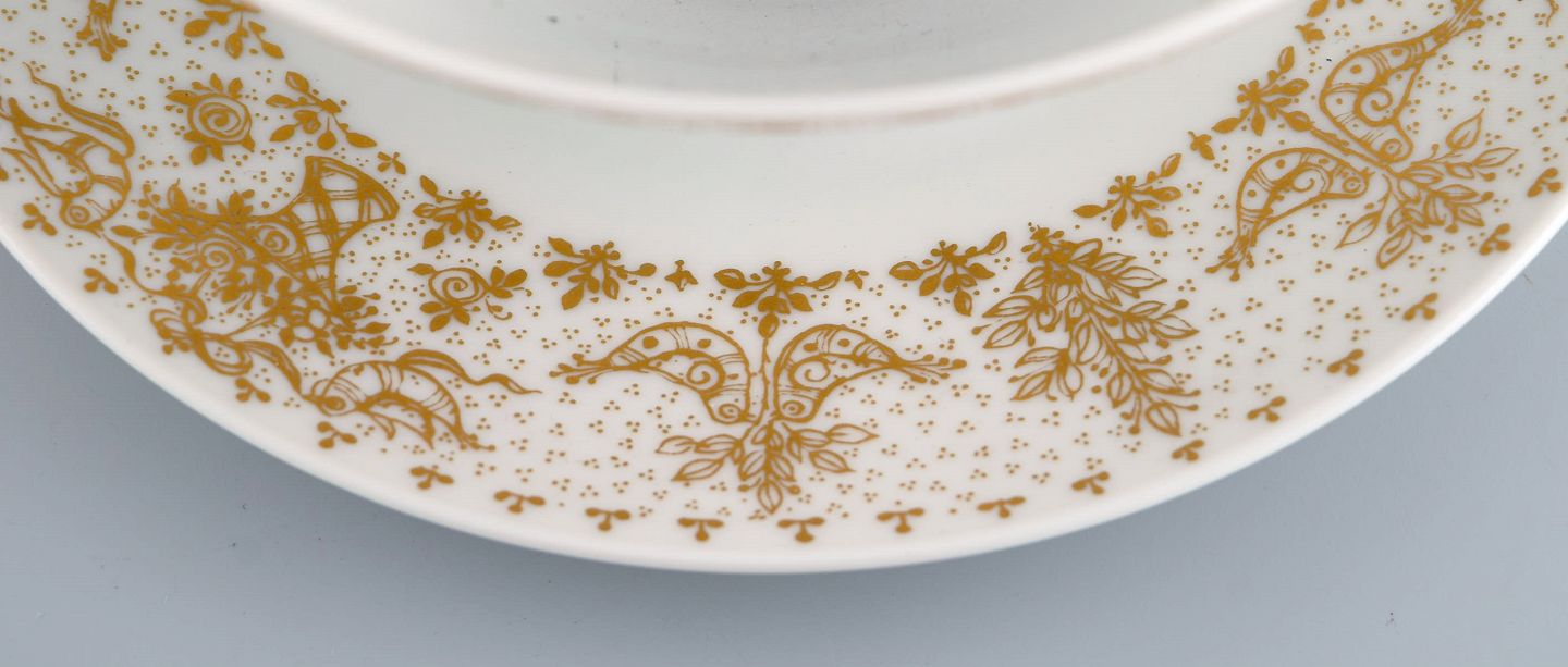 Bjørn Wiinblad for Rosenthal. Sovseskål i porcelæn med gulddekoration. 1980'erne.