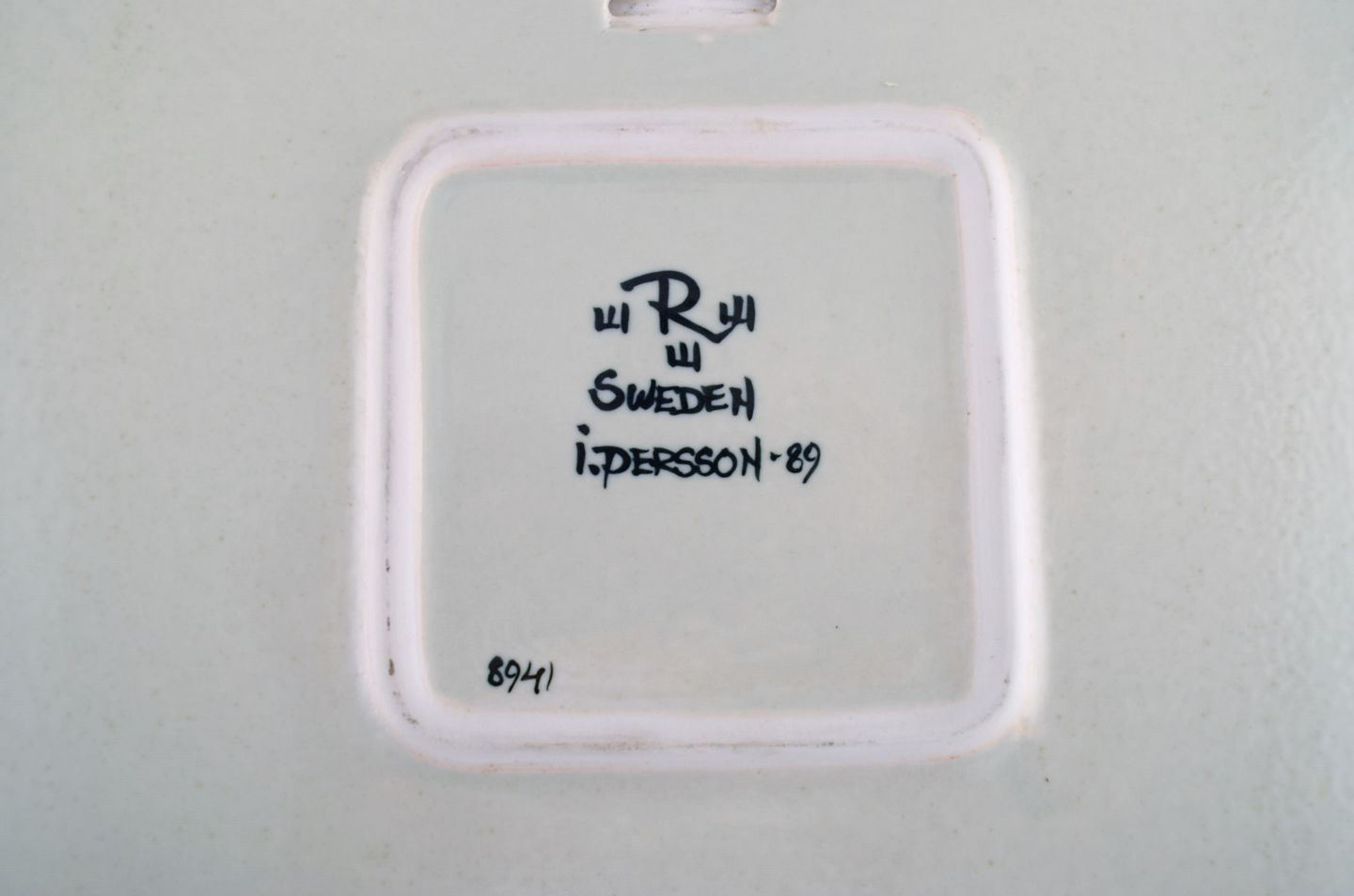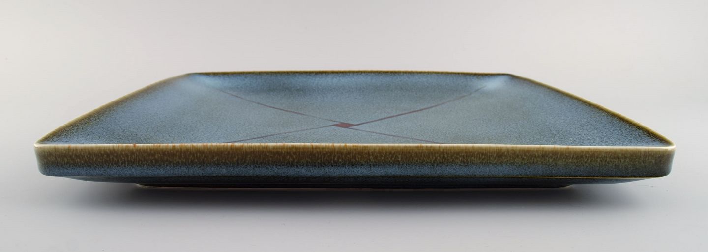 Inger Persson (f. 1936) for Rörstrand. Stort kvadratisk fad i glaseret keramik. Svensk design. Dateret 1989.