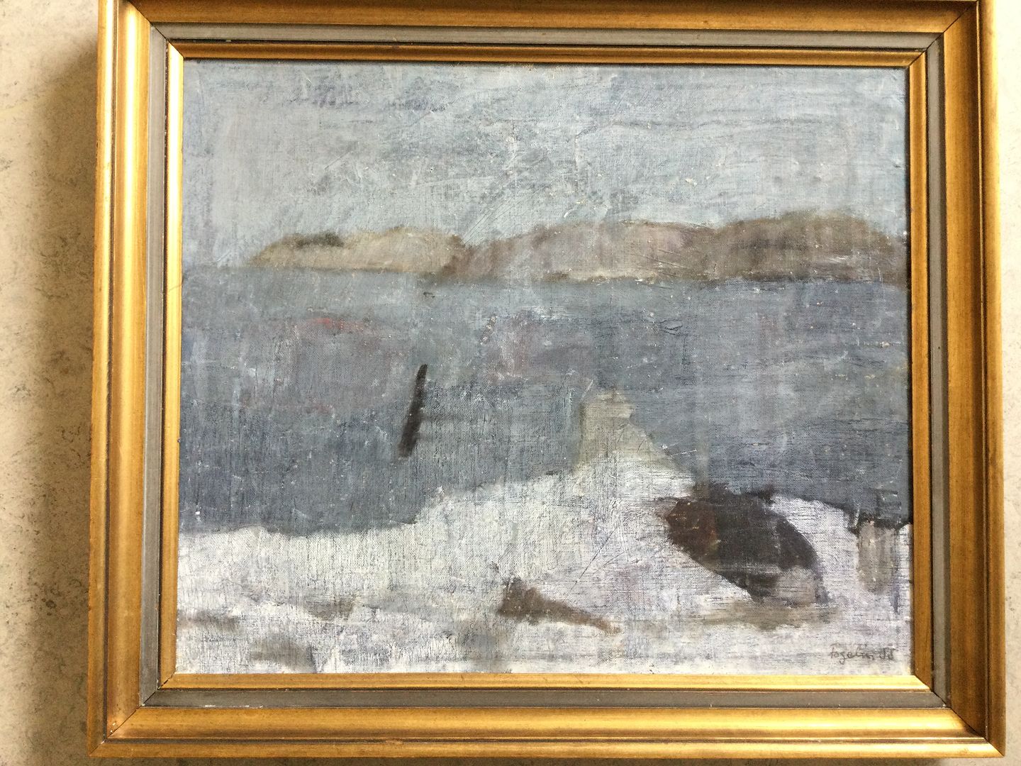 Maleri af Anders Fogelin - Landskab med sø 1955.