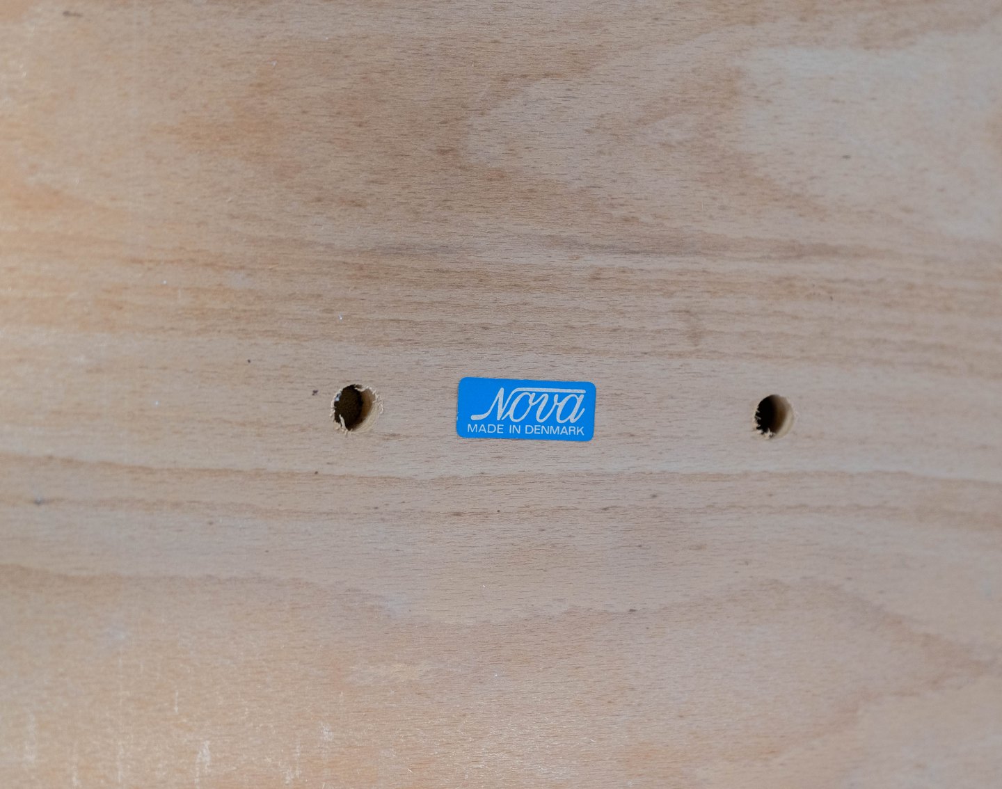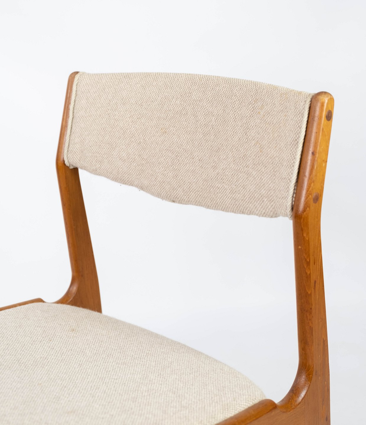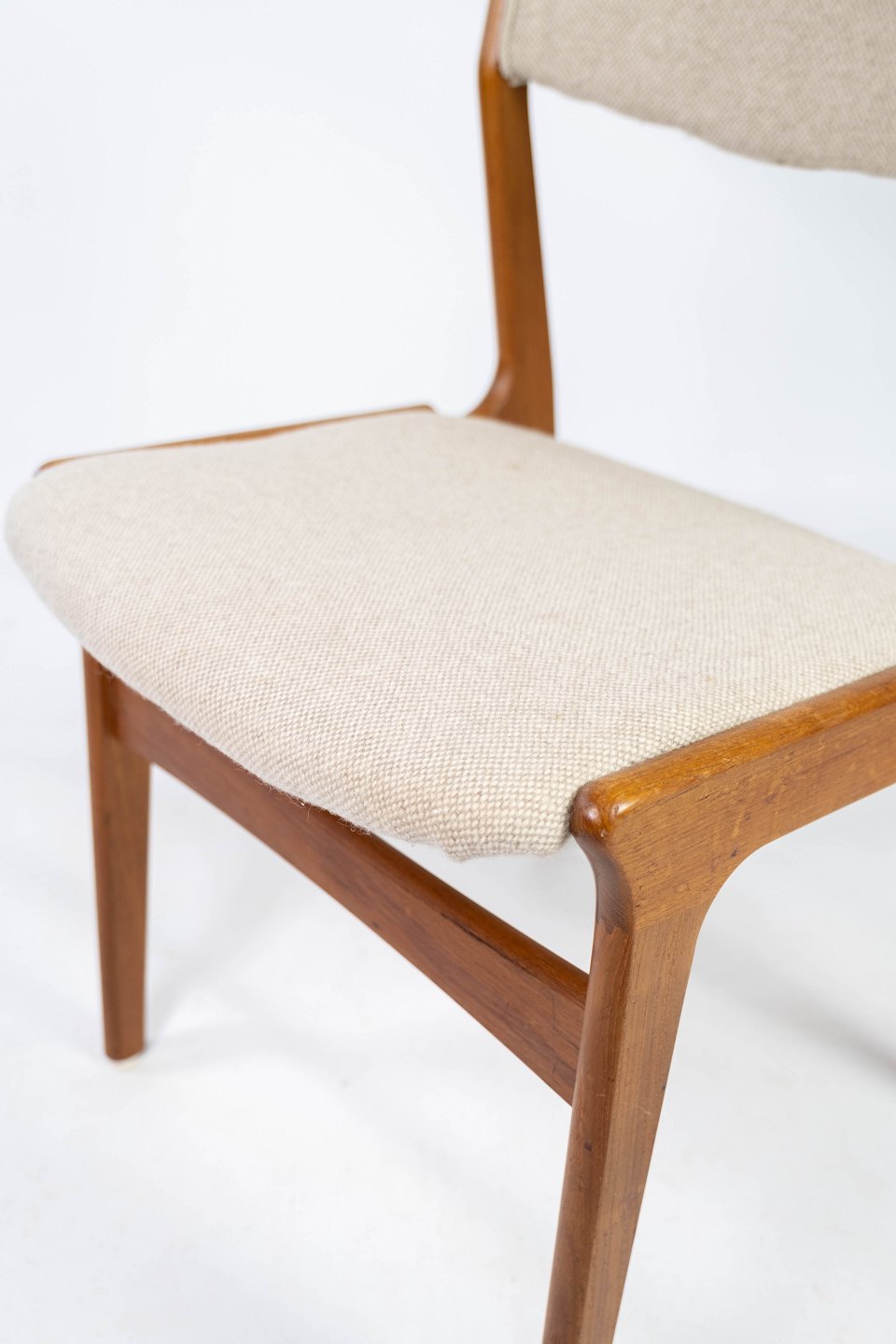 Sæt af spisestuestole i teak og polstret med lyst stof, designet af Erik Buch fra 1960erne.