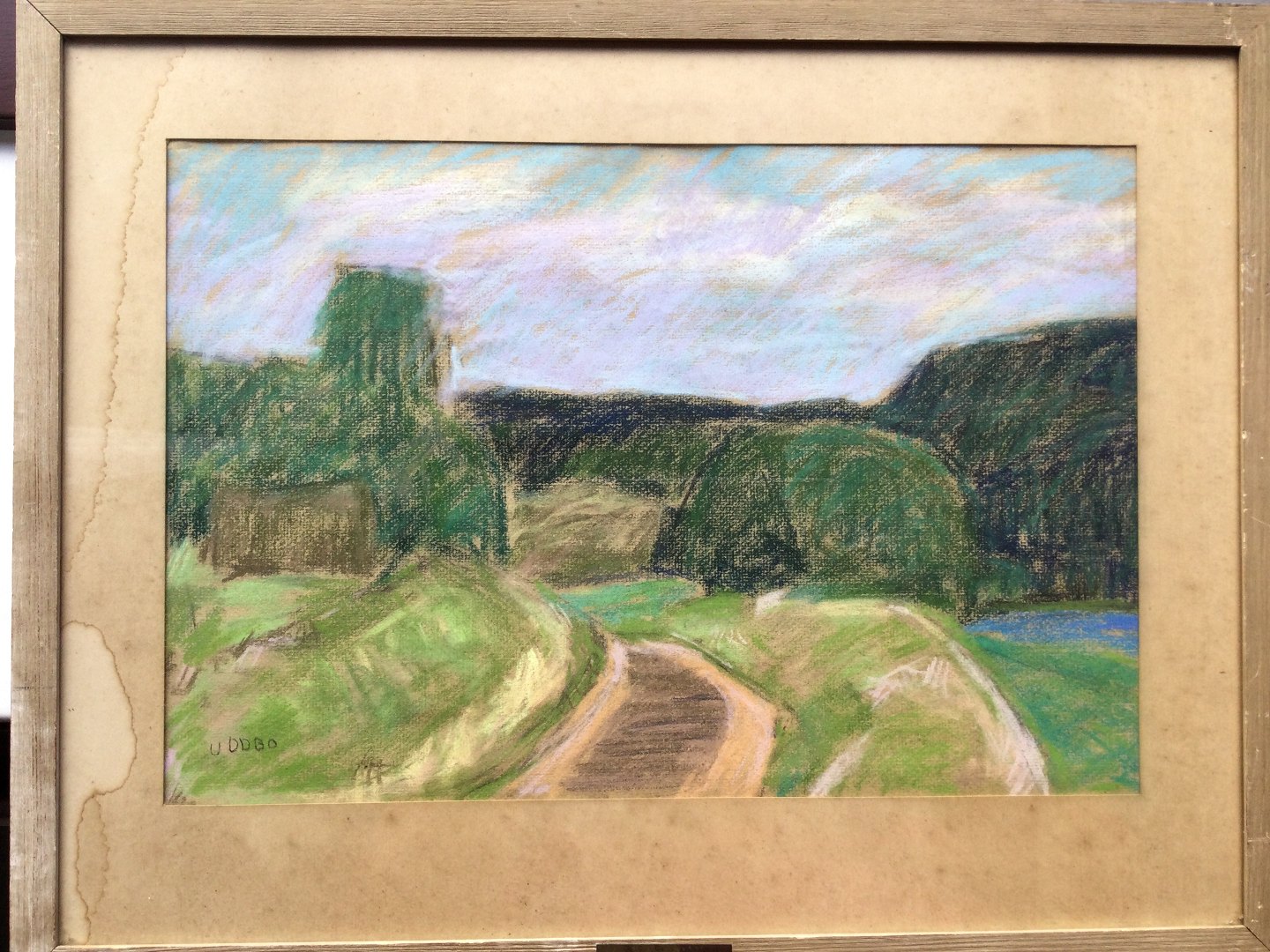 Farvekridt af Folke Uddbo - Landskab fra Fagersta i Sverige.