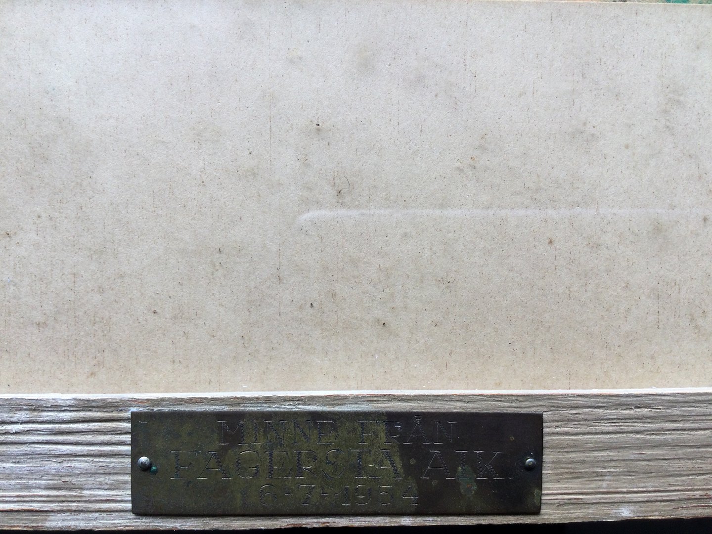 Skilt på rammen "Minne från Fagersta AIK 1954"