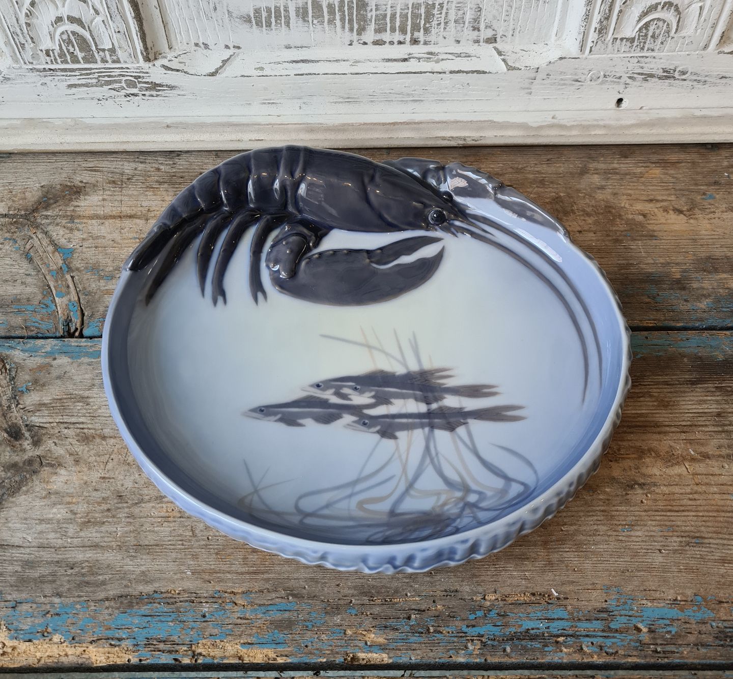 Royal Copenhagen bordfad dekoreret med med hummer og fisk