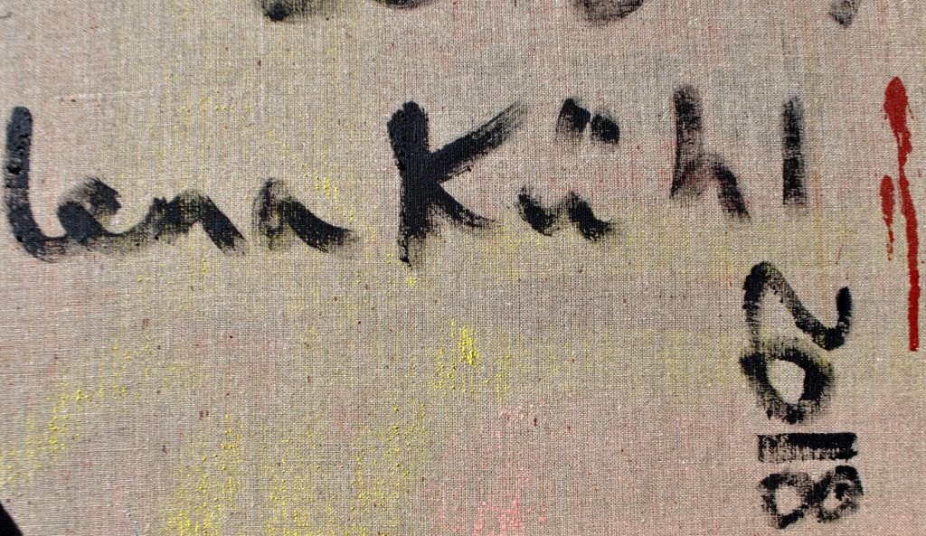 Kühl, Lena (1950 -) Danmark: Opstilling. Acryl på lærred. Verso signeret 2018. 38 x 53 cm.  Uindrammet.