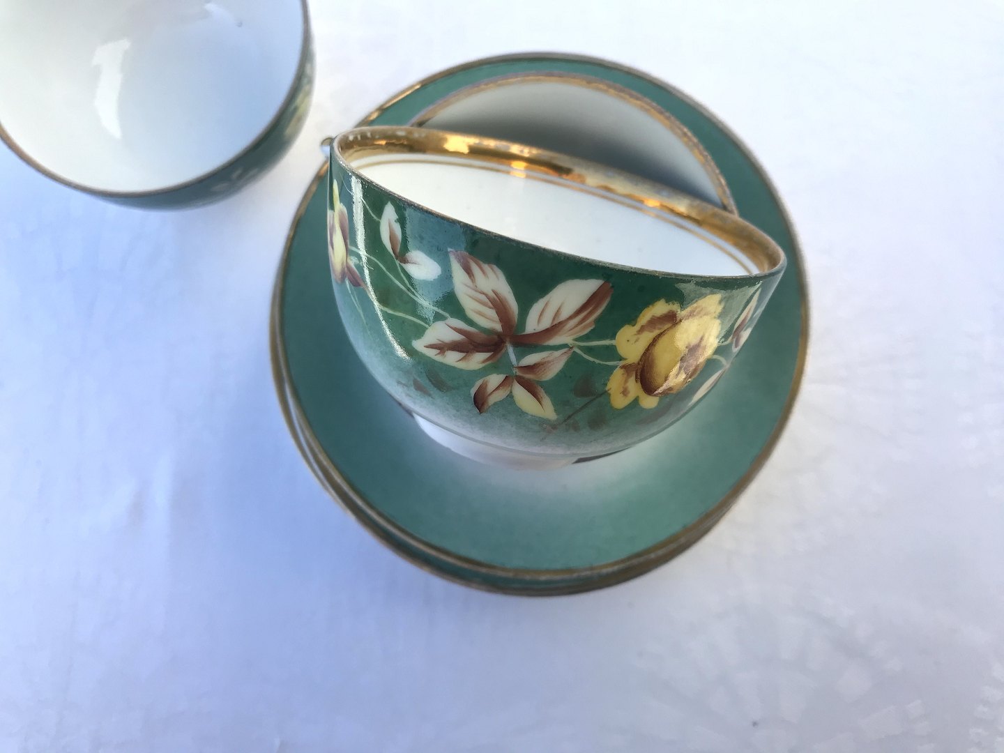 Bing & Grøndahl, kaffekop med grøn og gule blomster dekoration, 8cm i diameter, 5cm høj *Pæn stand*