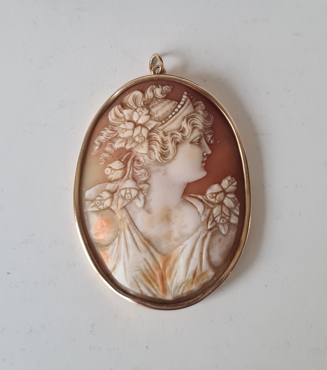 1800tals stort camé vedhæng fattet i 8 kt guld