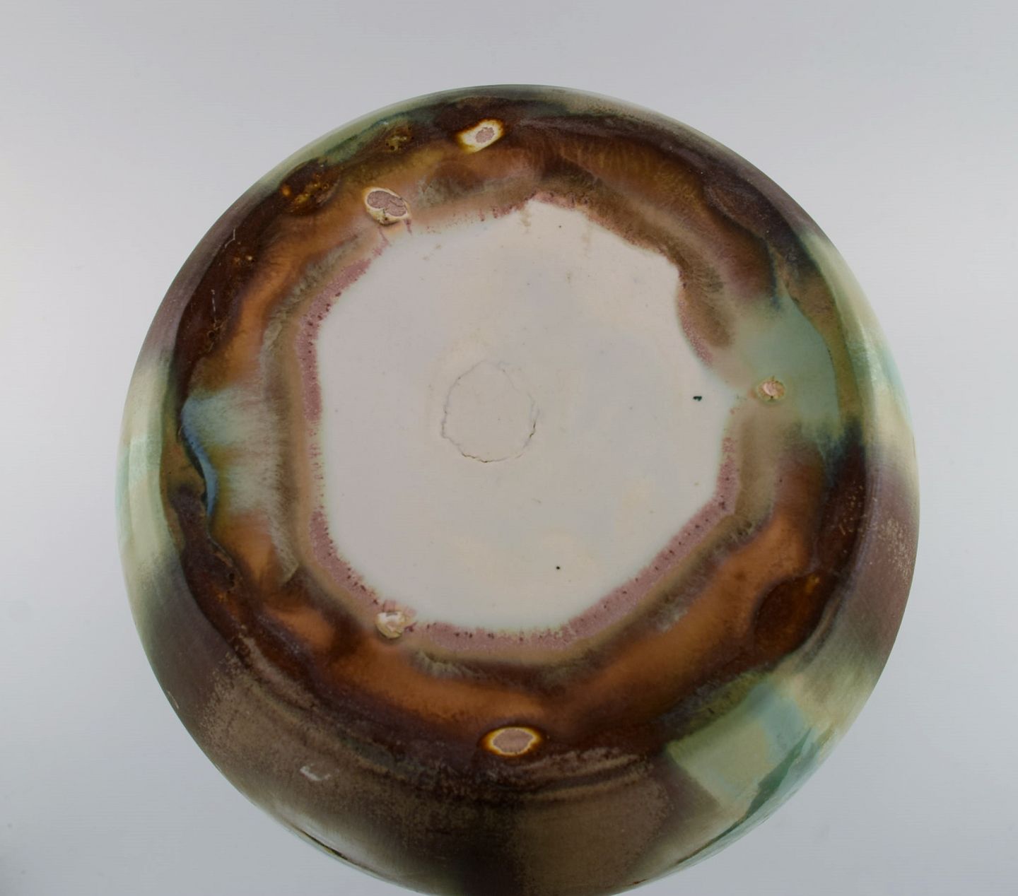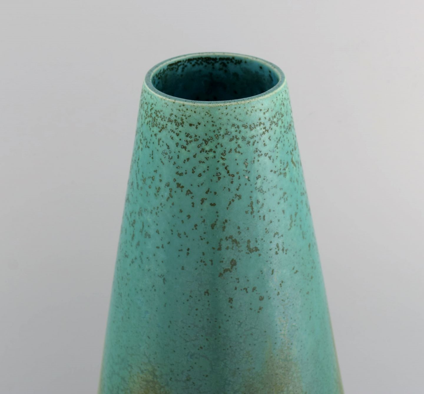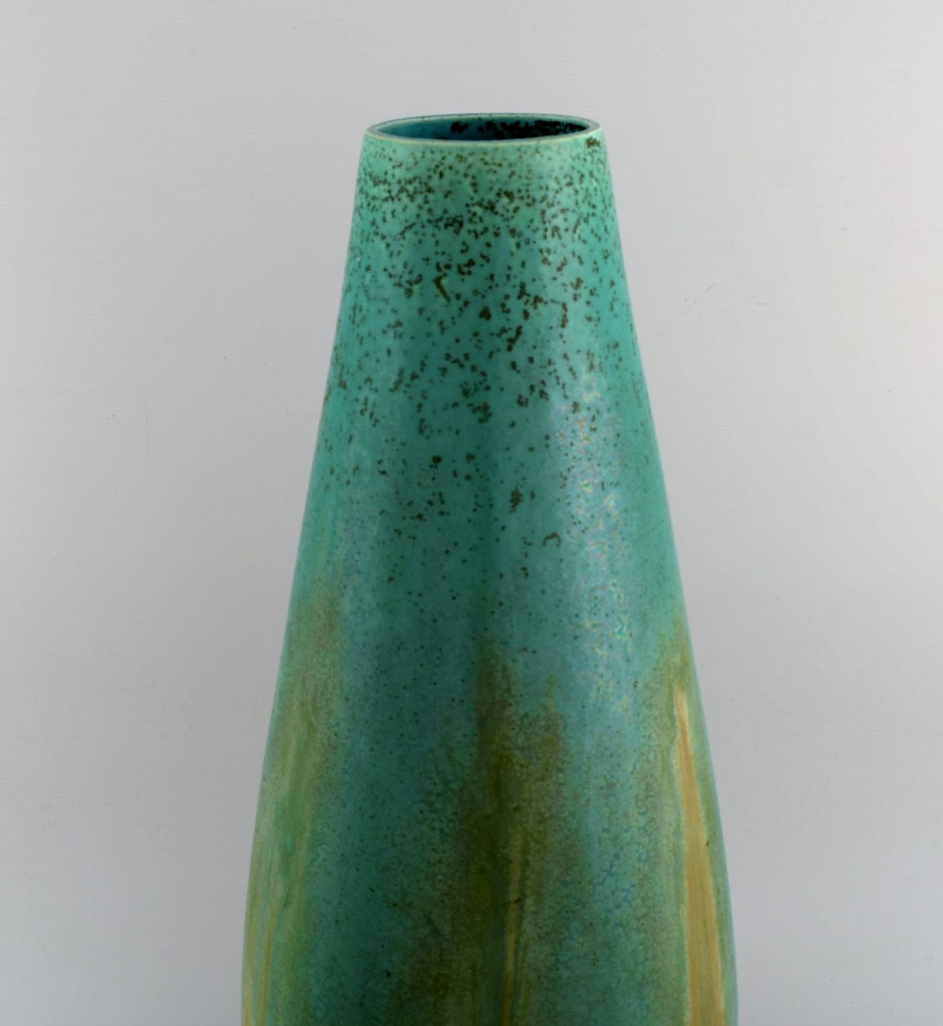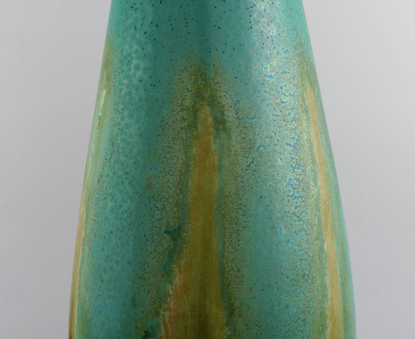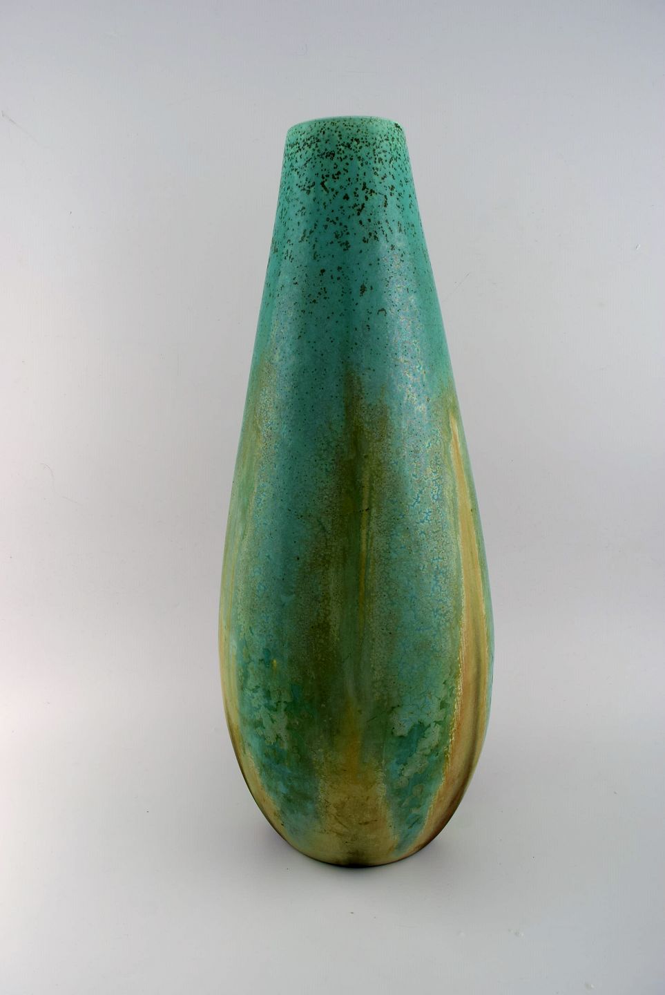 Et par kolossale franske art deco gulvvaser i glaseret keramik. Smuk glasur i turkis og lyse jordnuancer. 1940'erne.