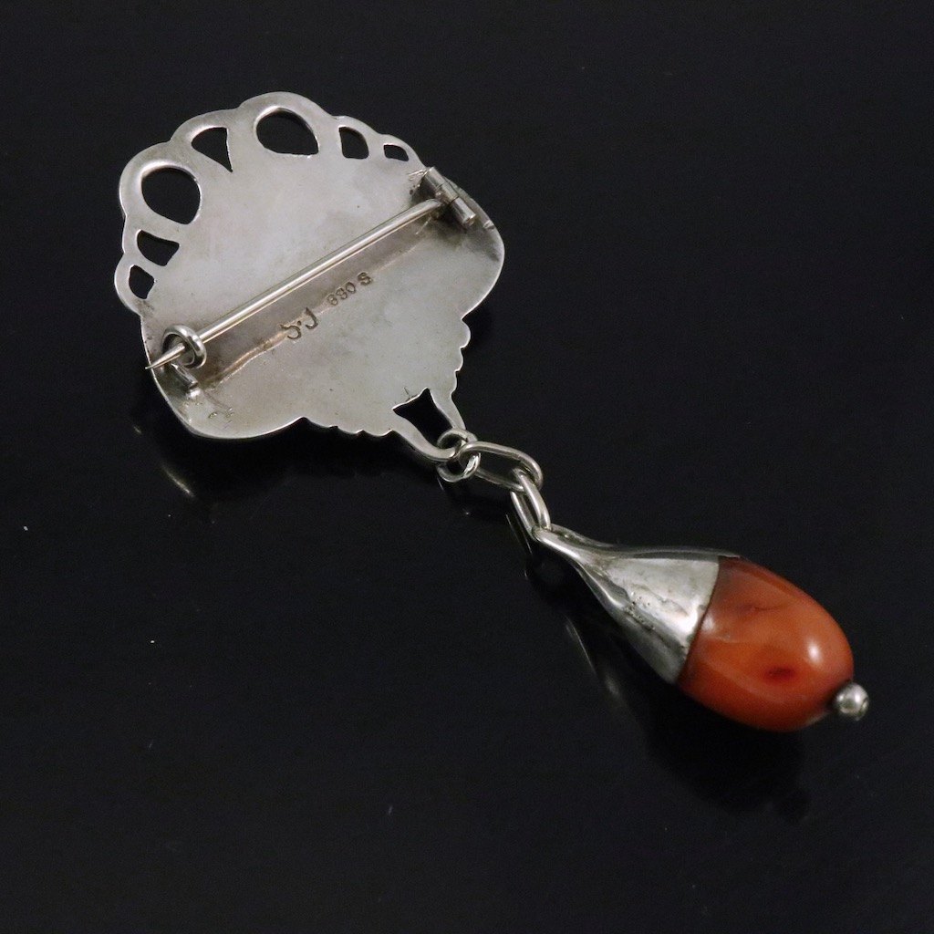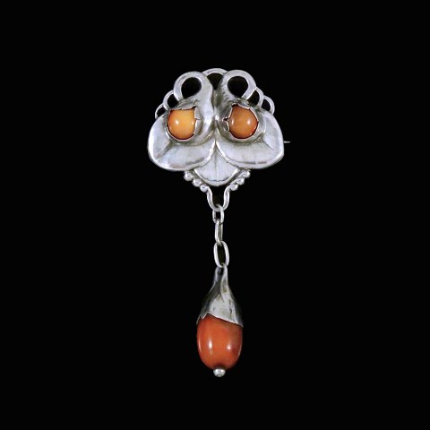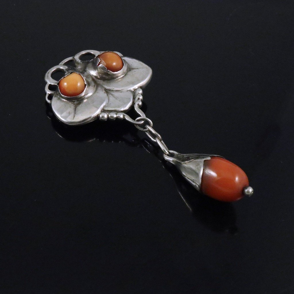 Dansk Skønvirke Broche i sølv med rav - Evald Nielsen.