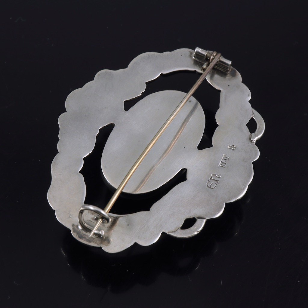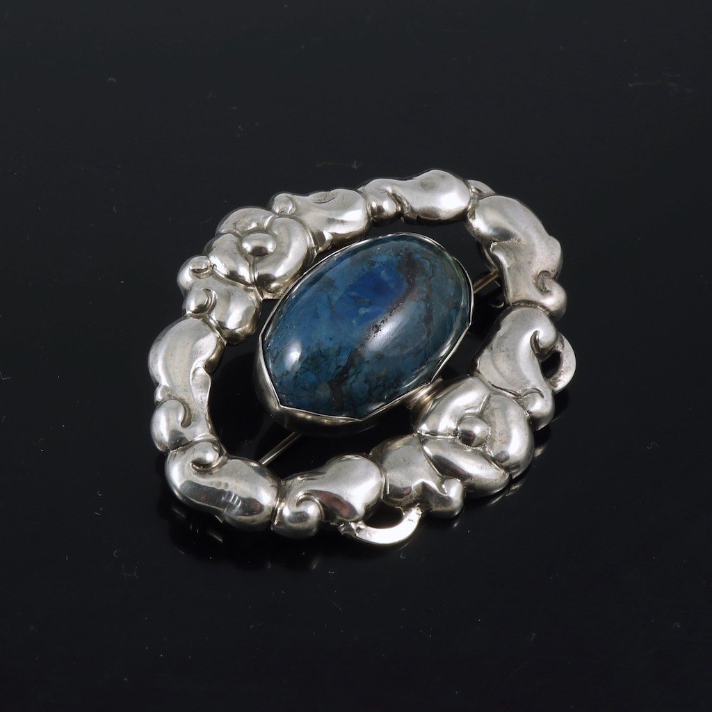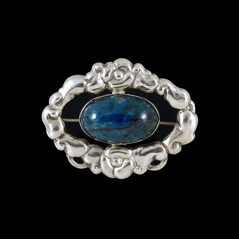 Evald Nielsen 1879 - 1958. Skønvirke Broche i sølv med Lapis lazuli.
