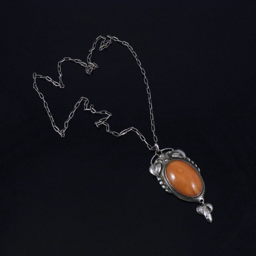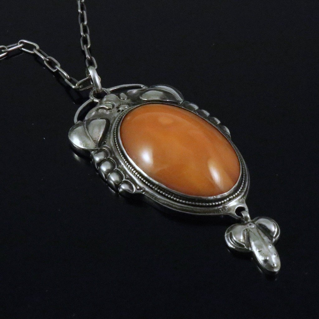 Bernhard Hertz. Skønvirke Vedhæng i sølv med rav.