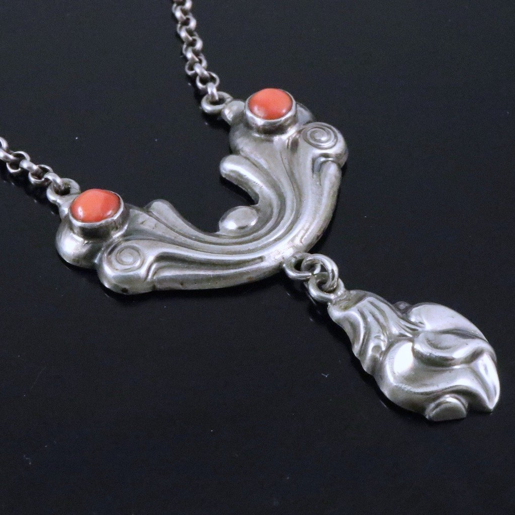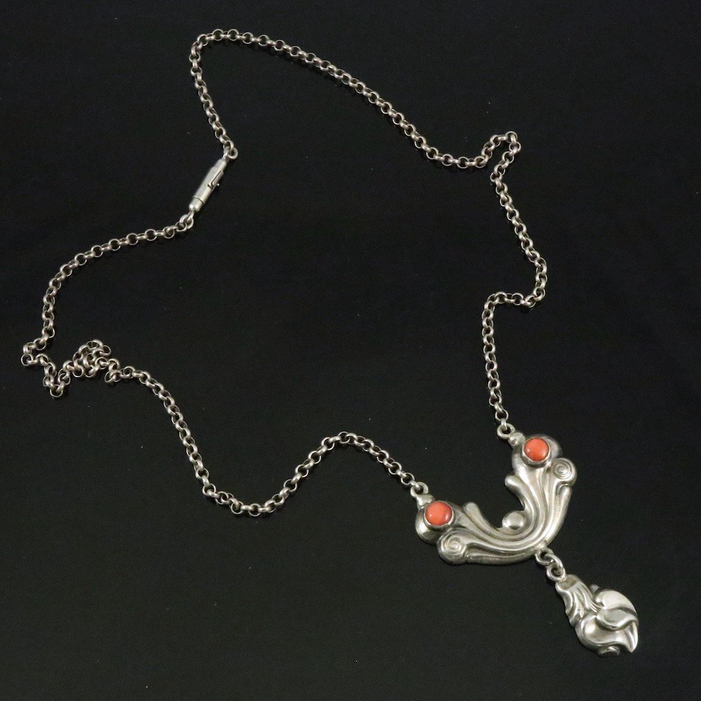 H.P. Kreiberg. Skønvirke Vedhæng i sølv med koral.