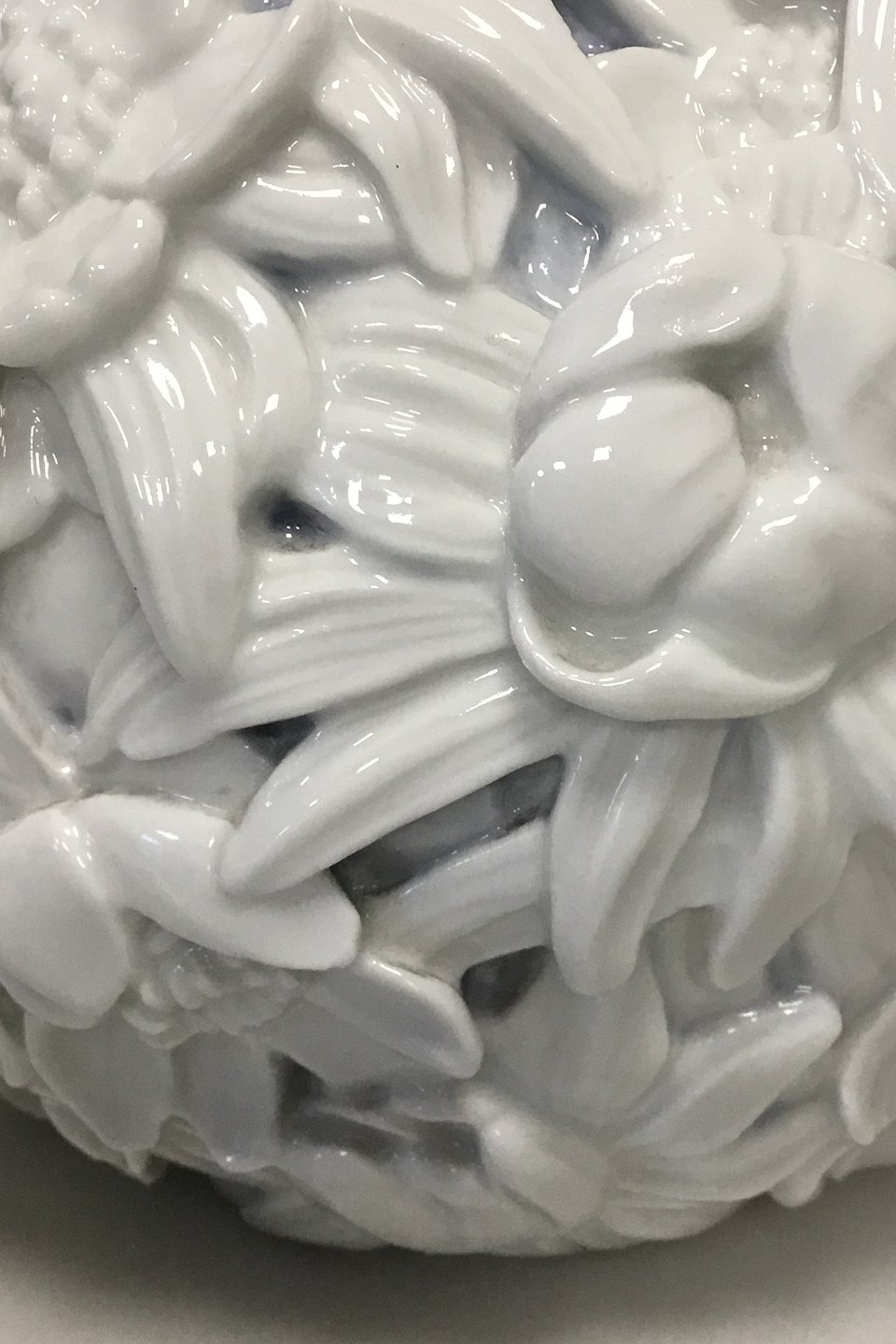 Effie Hegermann-Lindencrone Unika Vase fra 1913 med unika nummer 1382. Hvid vase, men lyseblåt mellem dekorationen