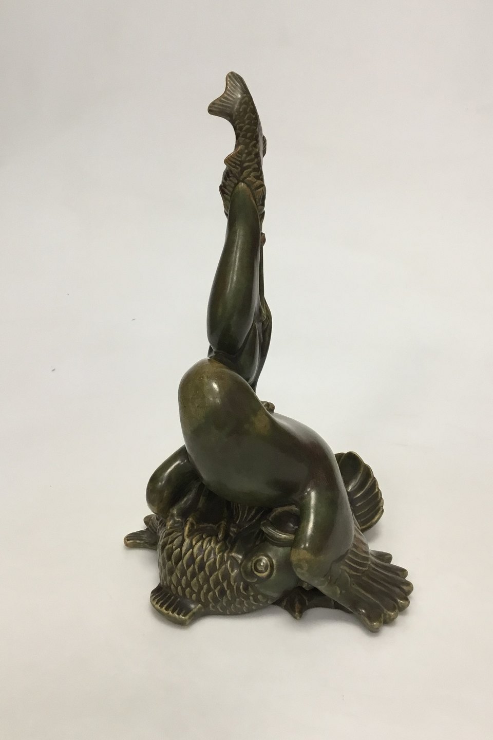 Unika Royal Copenhagen Hugo Liisberg Figur af Pelikan med fisk fra den 27-9-1919