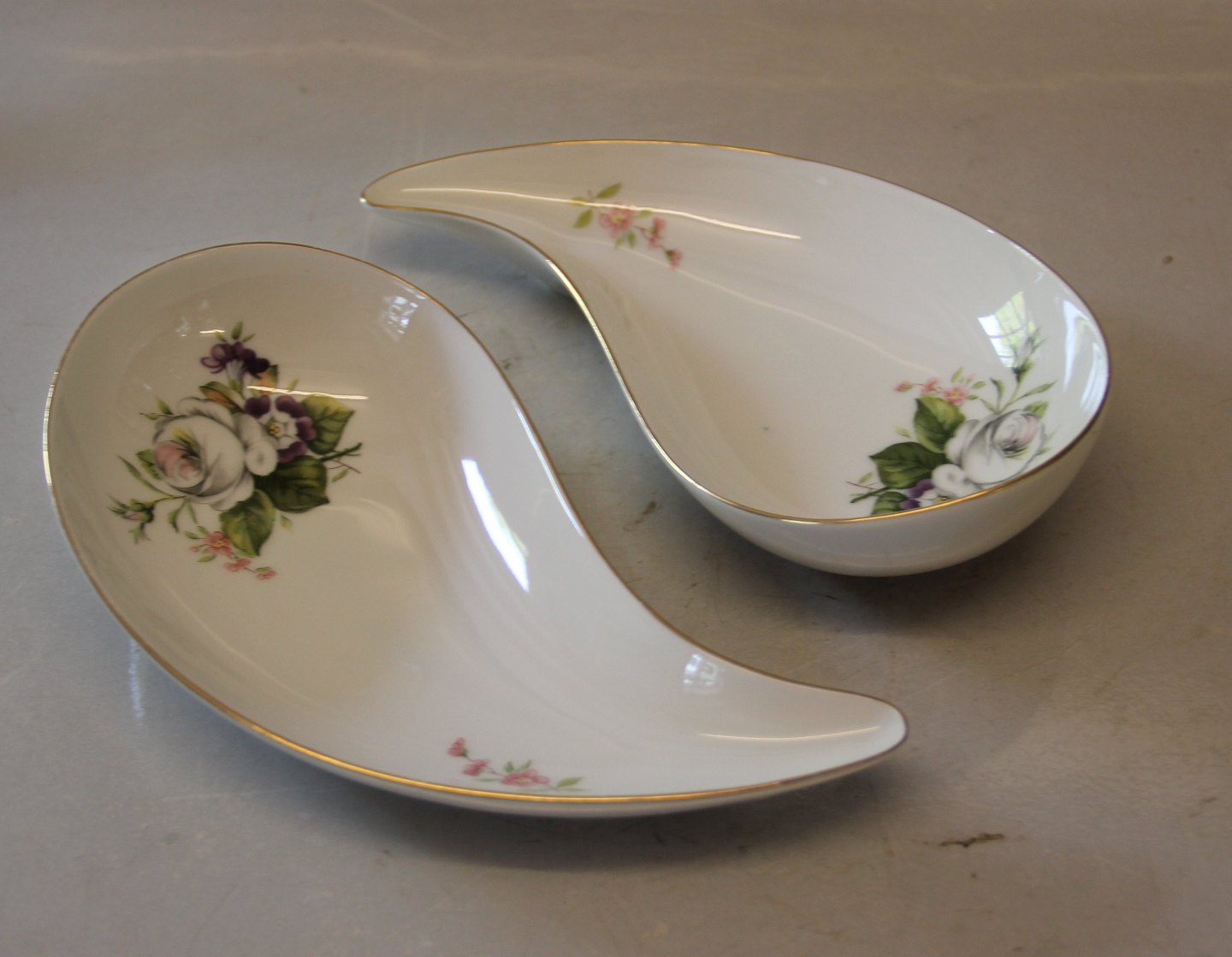 Hvidt porcelæn med guldkant. Decor: Hvid vild rose og violer. form 676 I fin og hel stand.
