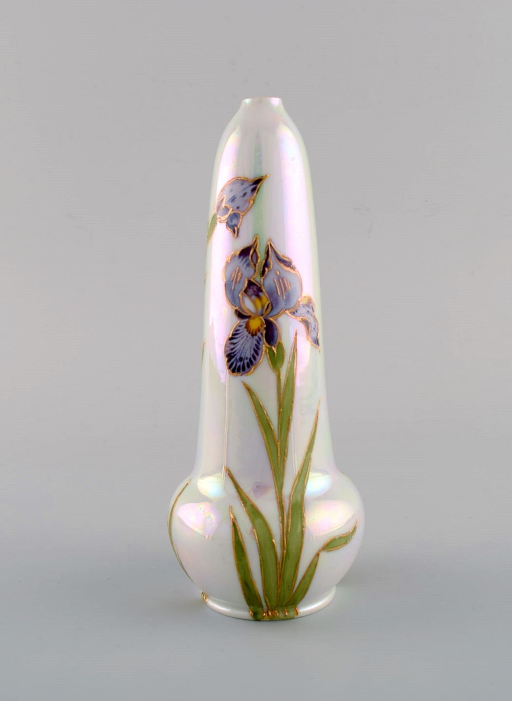 Heubach, Tyskland. To antikke art nouveau vaser i porcelæn med håndmalede blomster. Ca 1900.