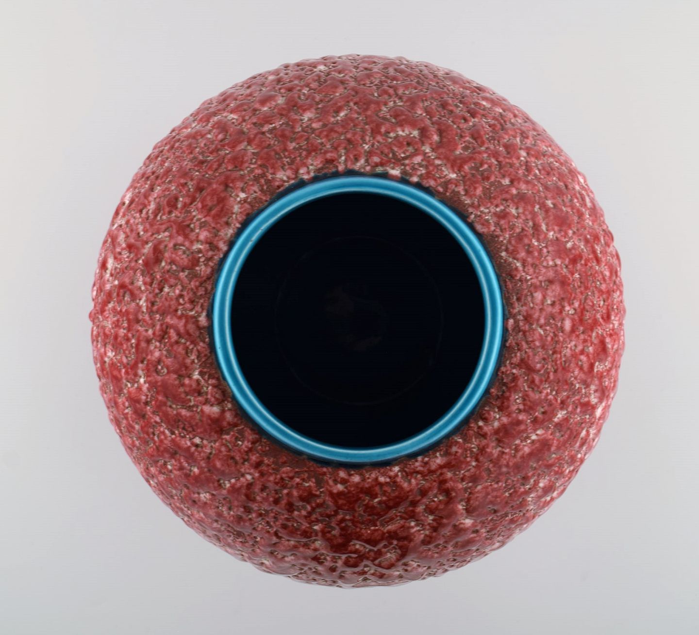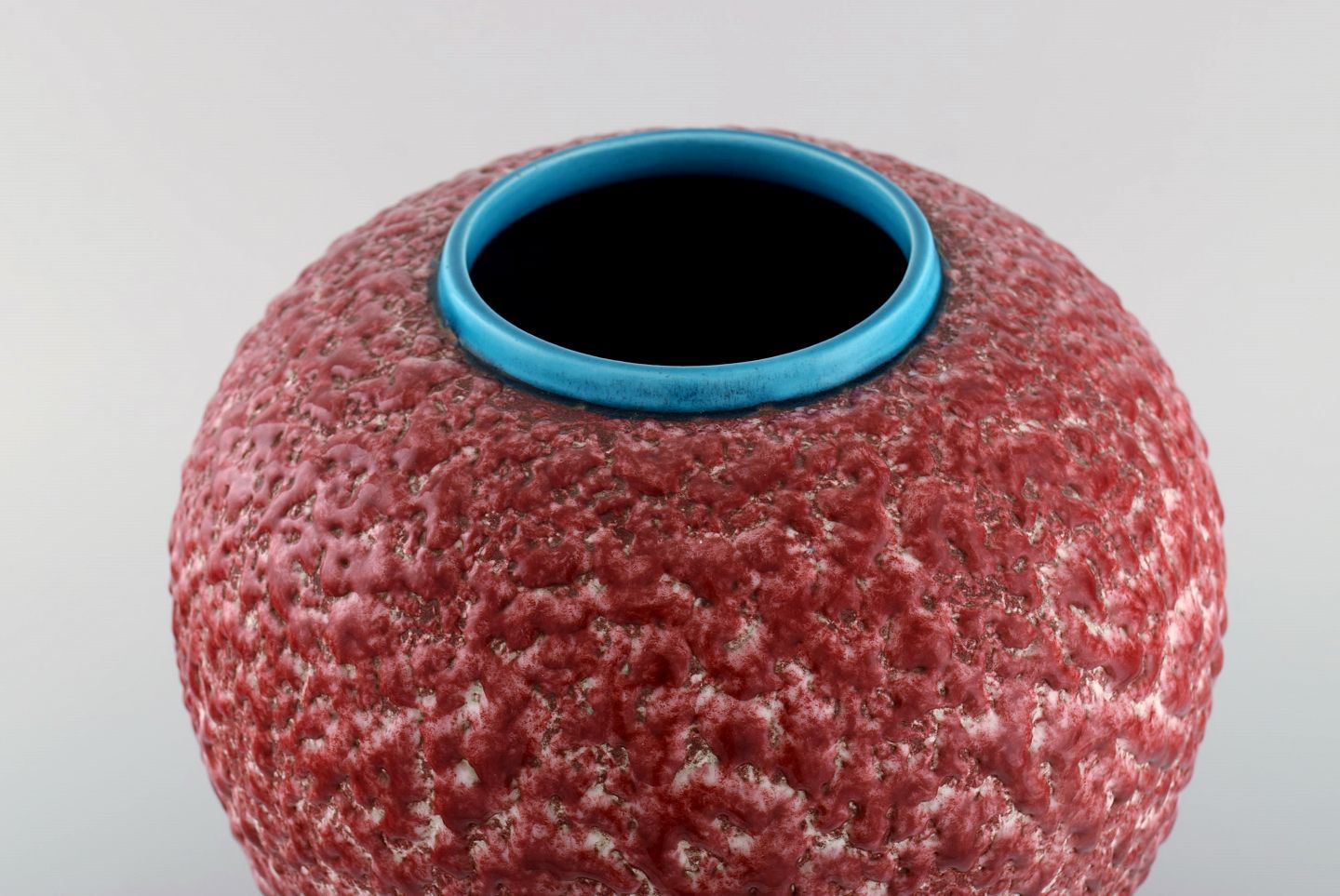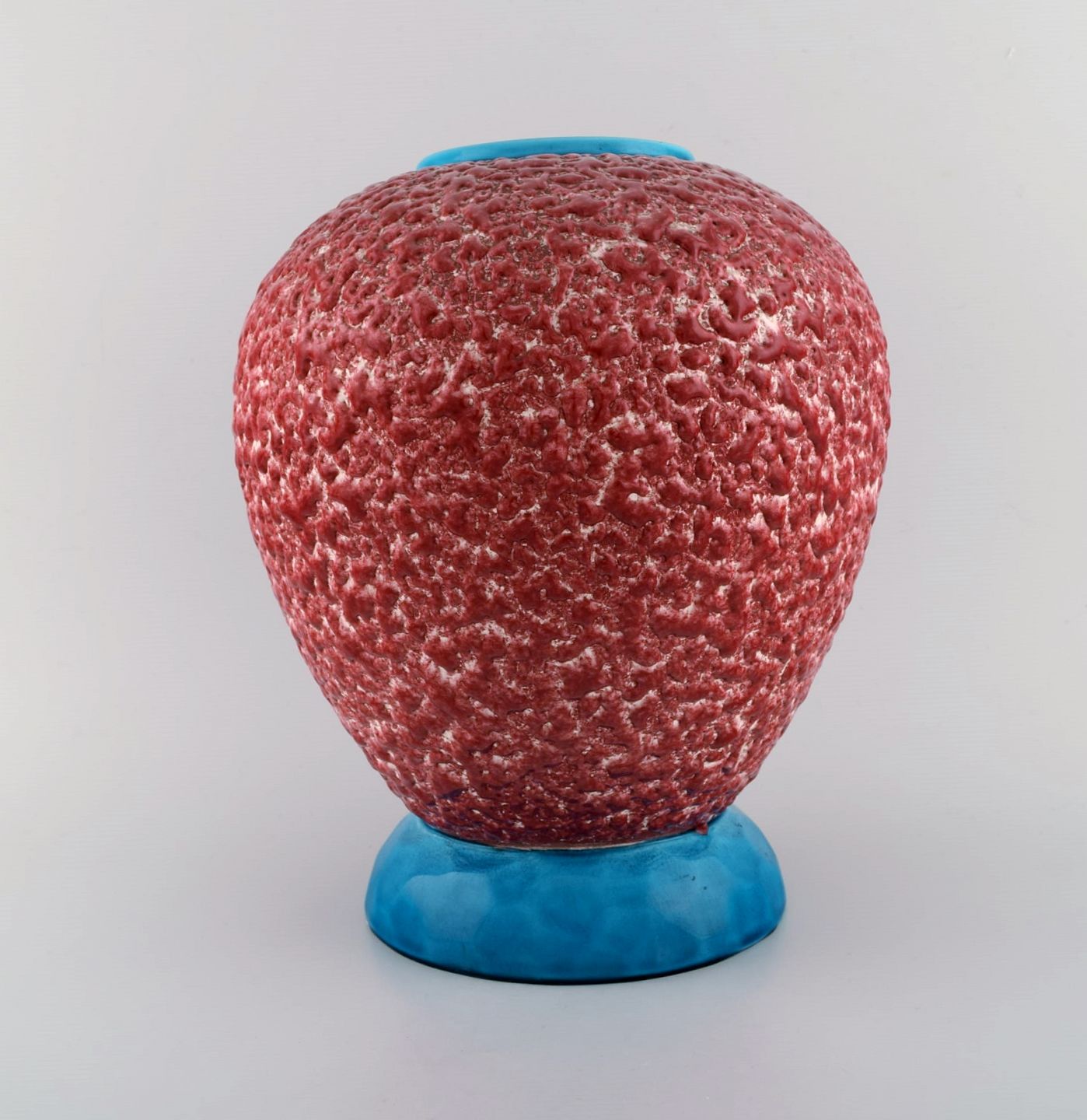 Paul Milet (1870-1930) for Sevres, Frankrig. Stor art deco vase i glaseret keramik. Fantastisk glasur i blå og røde nuancer. 1920'erne.
