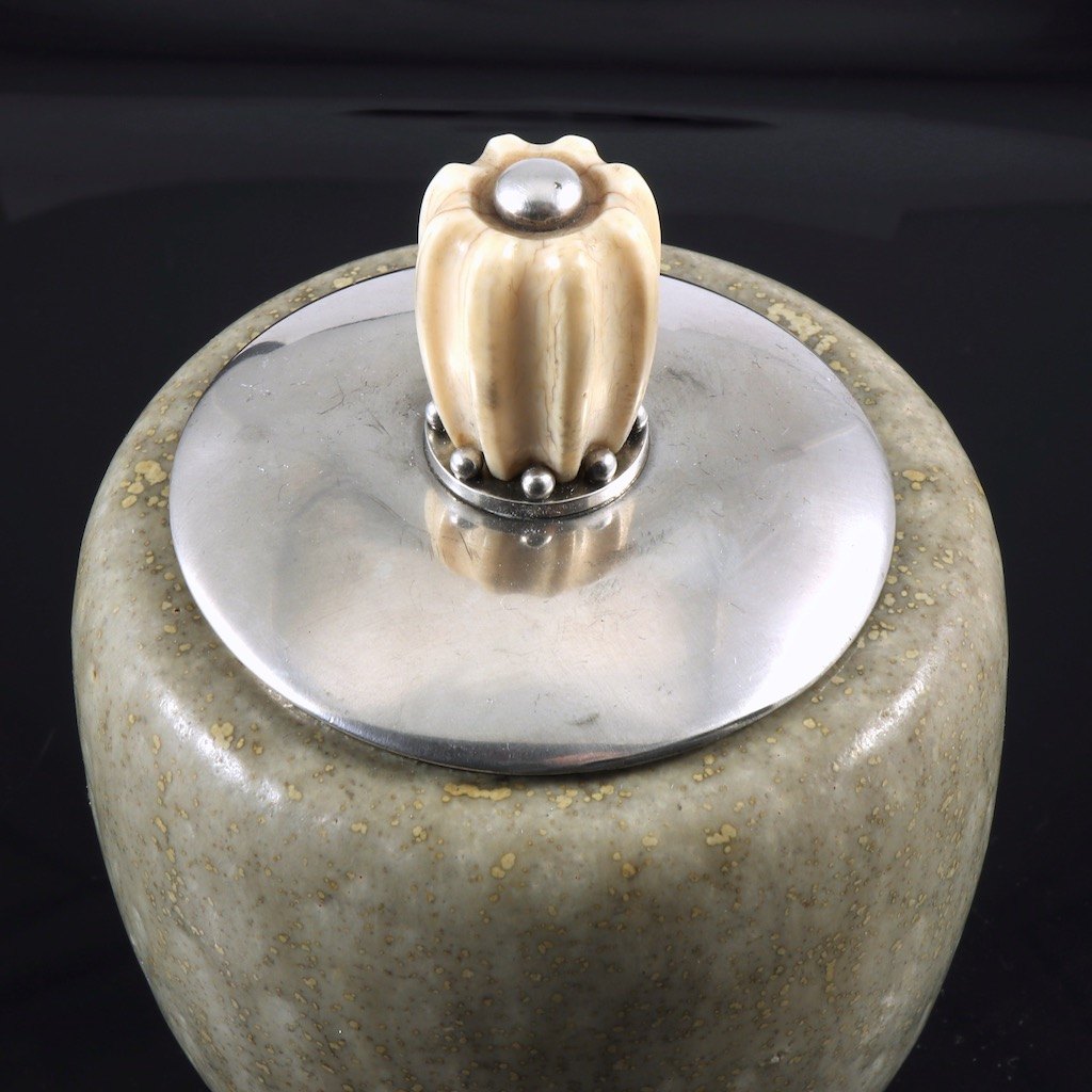 Arne Bang / Evald Nielsen. Stoneware Jar with Sterling Silver Lid.