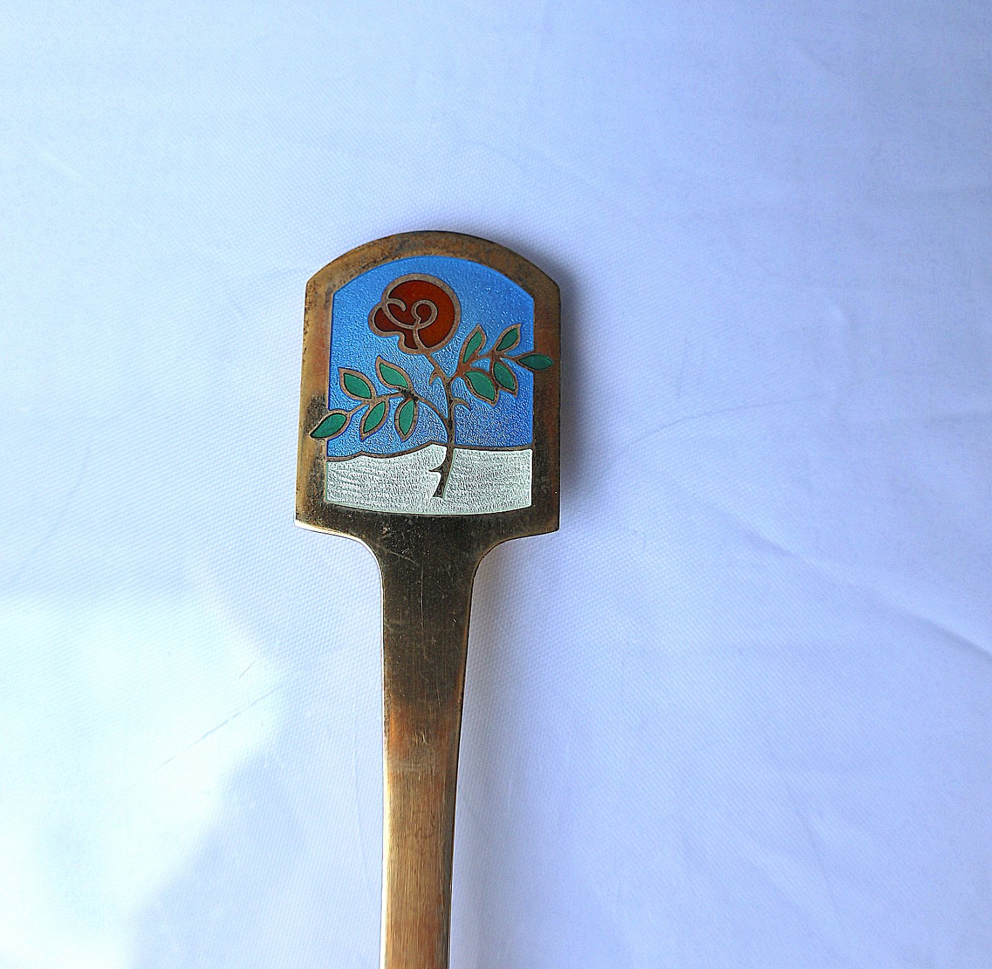 Anton Michelsen juleske 1977. Skeen er forgyldt sølv, dekorationen er Vinter rose i emalje.