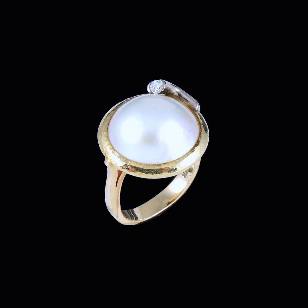 Dansk Design. Ring i 14k guld med perle og diamant.