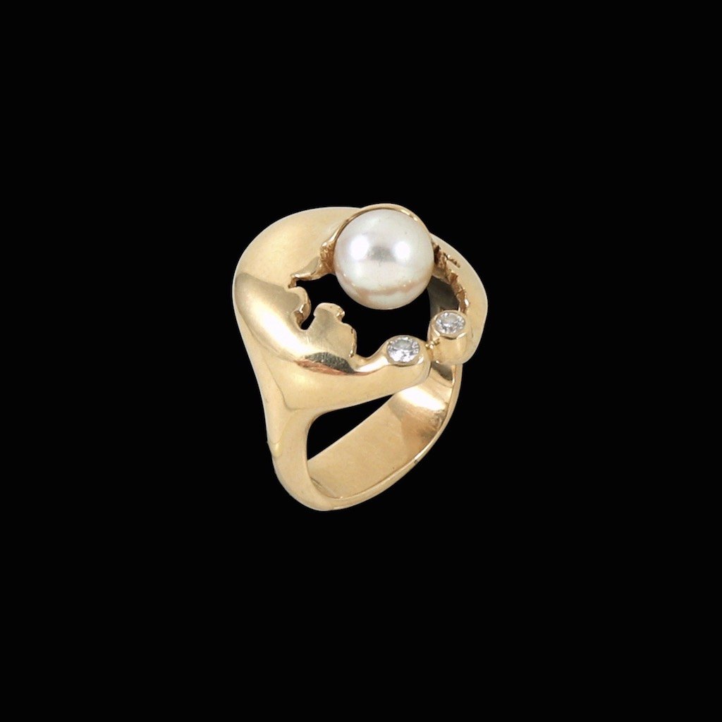 Johan Torp. Ring i 14k guld med perler og diamanter. 0.06ct