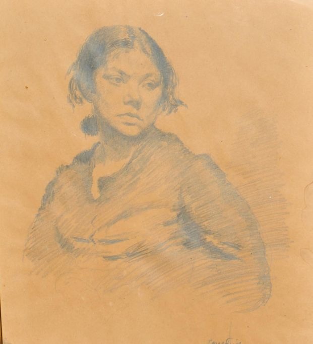 Fischer, Carl Frands Andreas Johan Seidel (1887 - 1962) Danmark: Kvindeportræt. Bly på brunt papir. Signeret 1924. 32 x 28 cm.