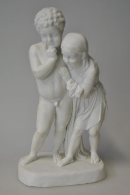 Bing & Grøndahl bisquit figur af to børn, 19. årh. København, Danmark. Stemplet. H.: 18,5 cm.