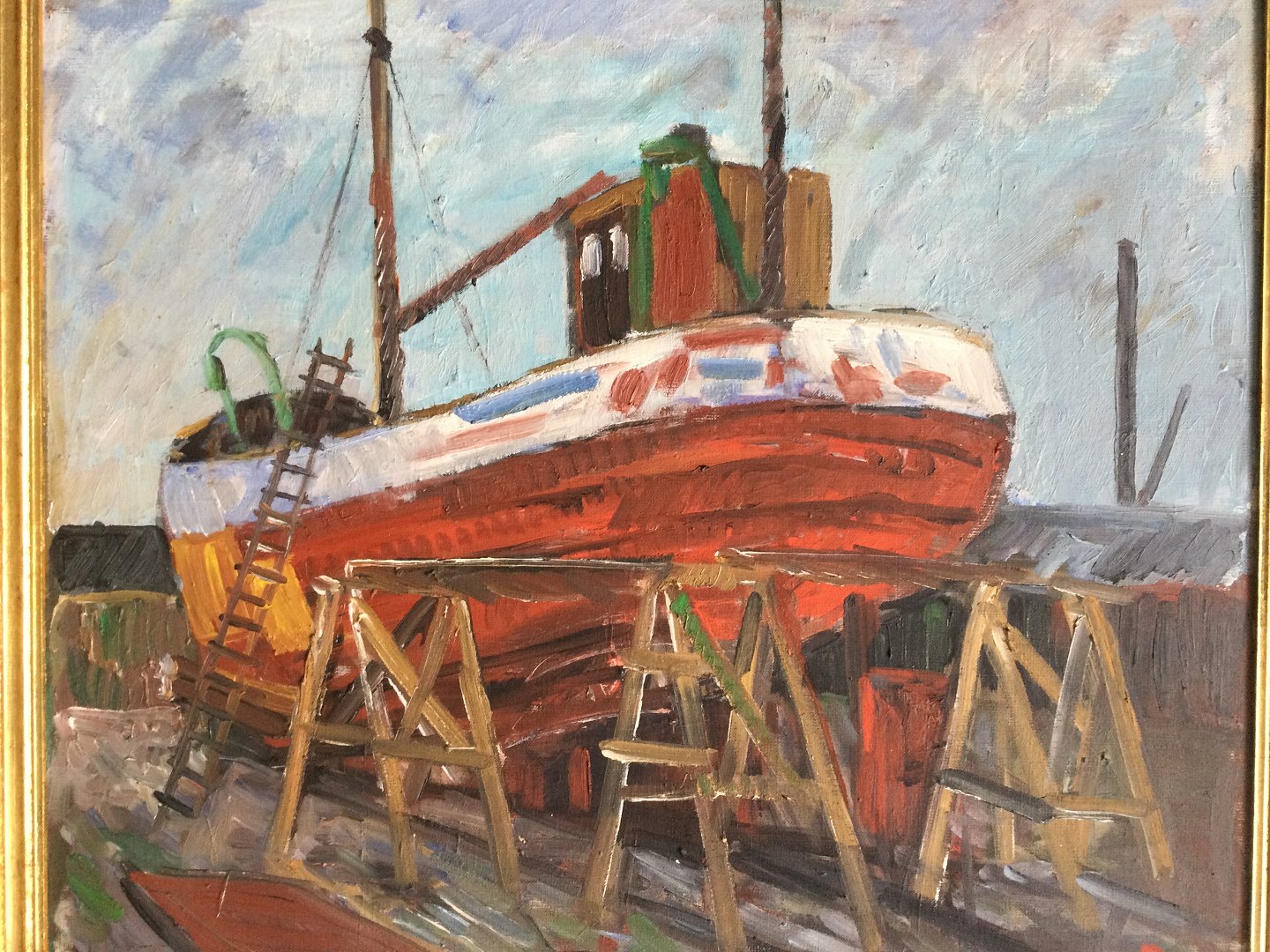 Maleri af Poul Sørensen - "Havnen" 1978.