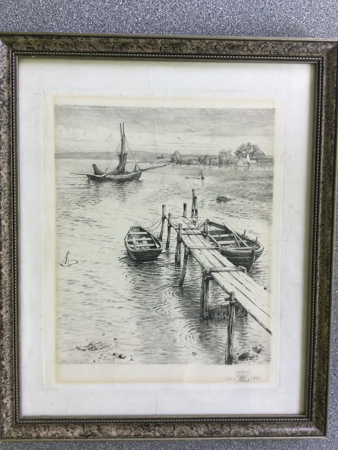 Radering af Peter Tom-Petersen - Badebroen, Troense 1901.