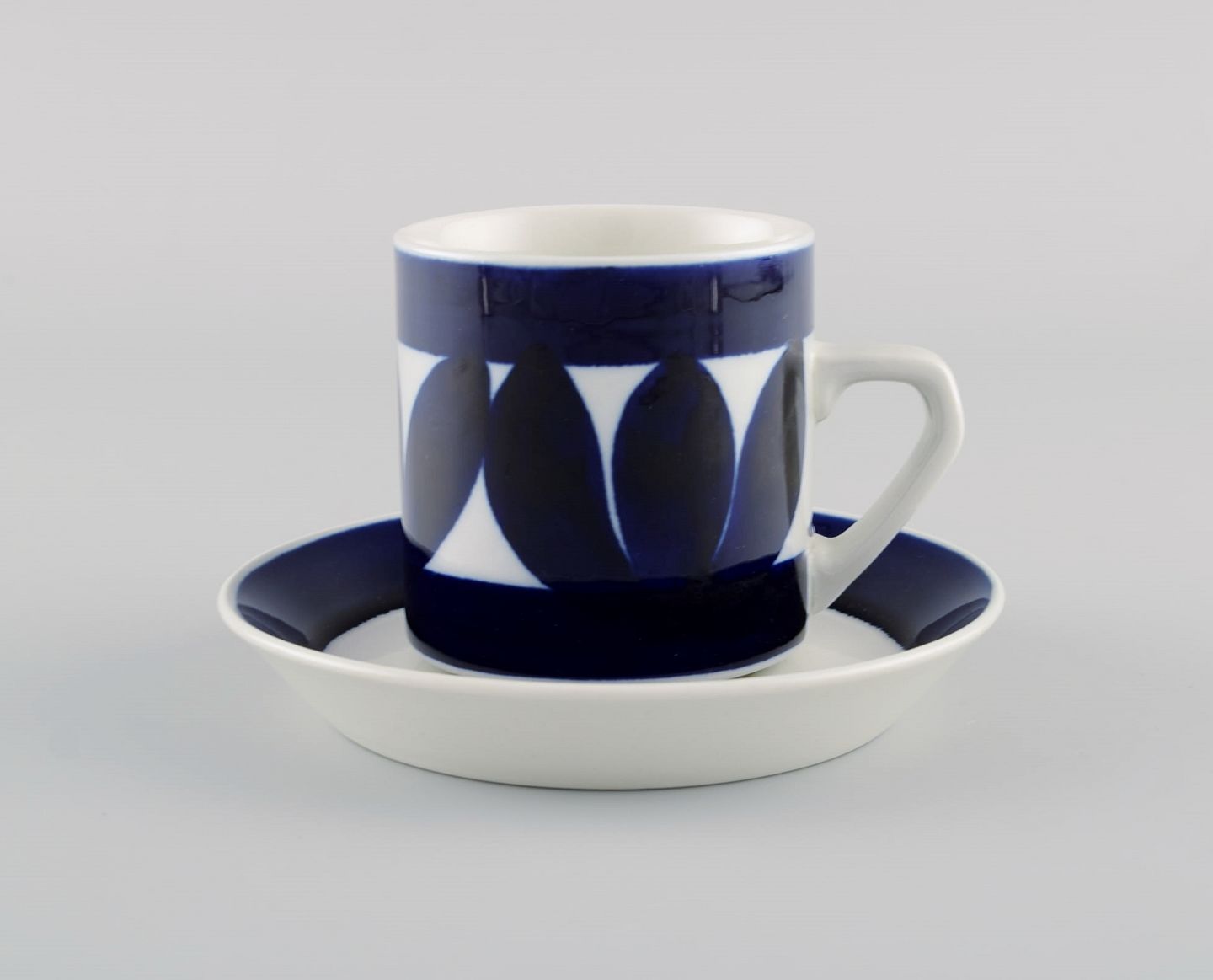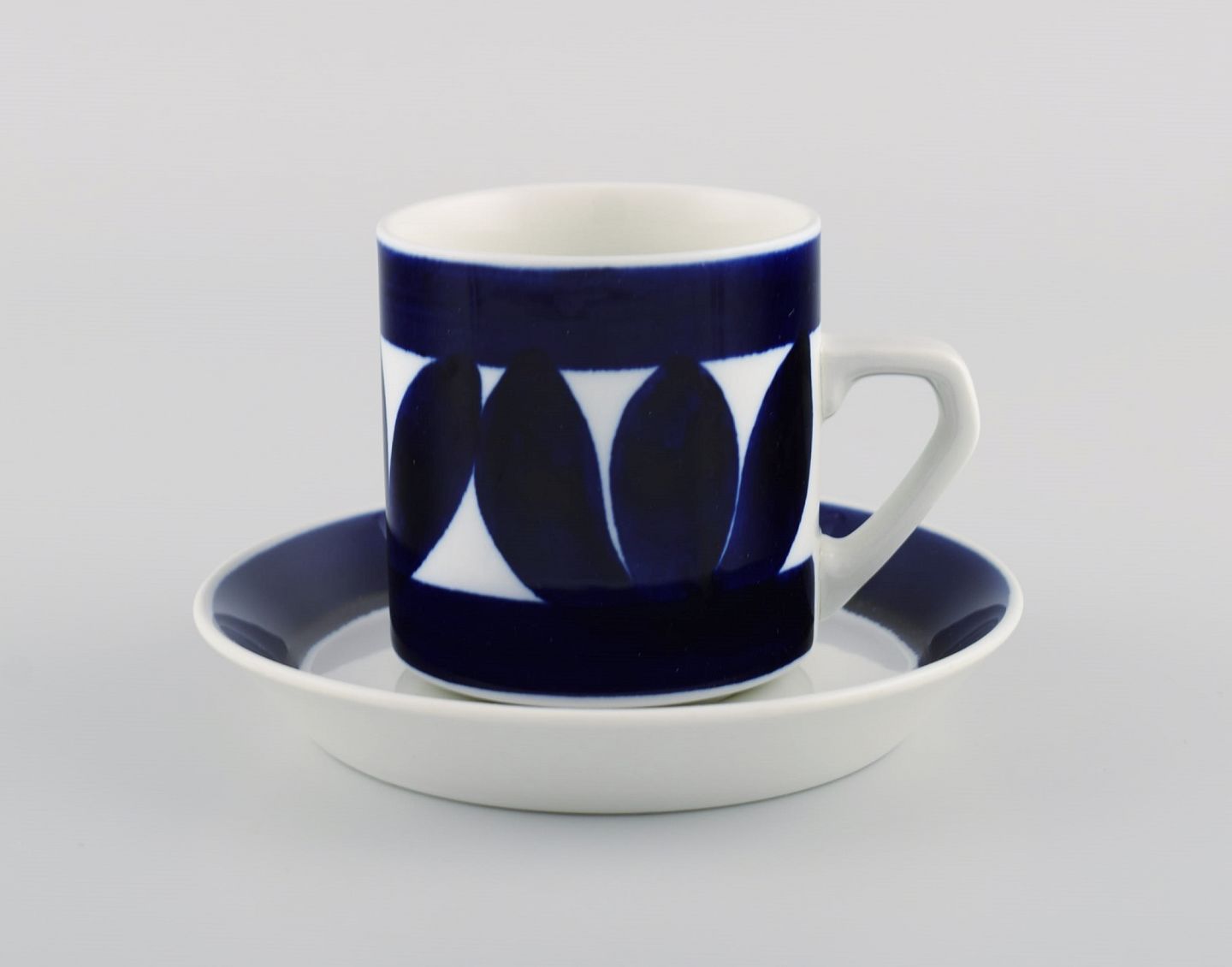 Raija Uosikkinen (1923-2004) for Arabia. Otte Sotka kaffekopper med underkopper i håndmalet glaseret stentøj. Finsk design, 1960'erne.
