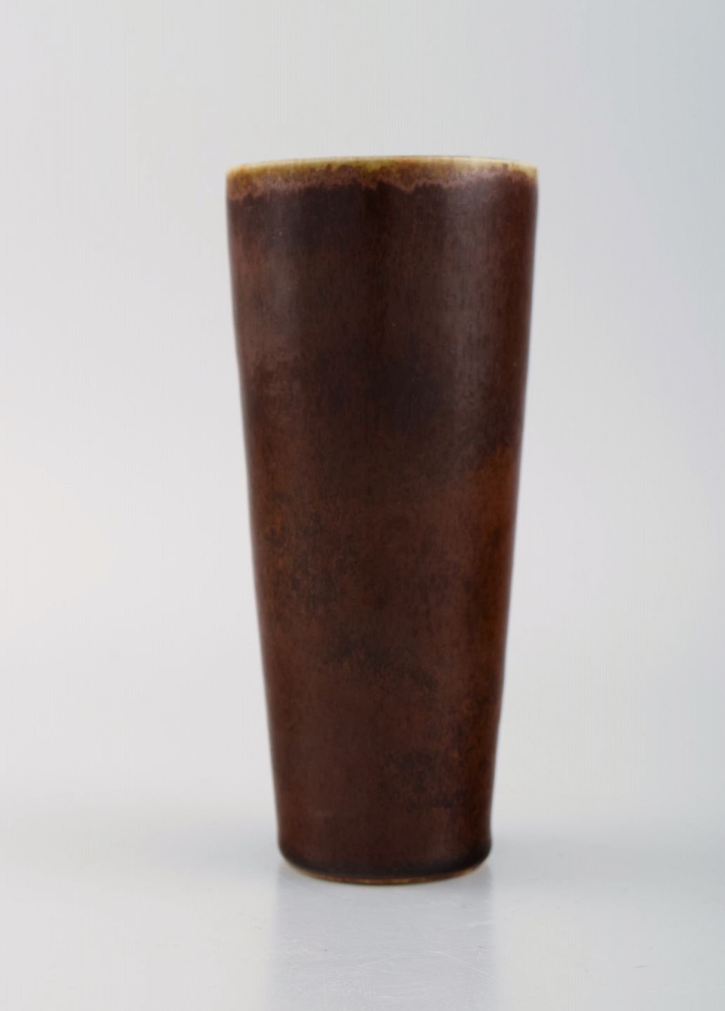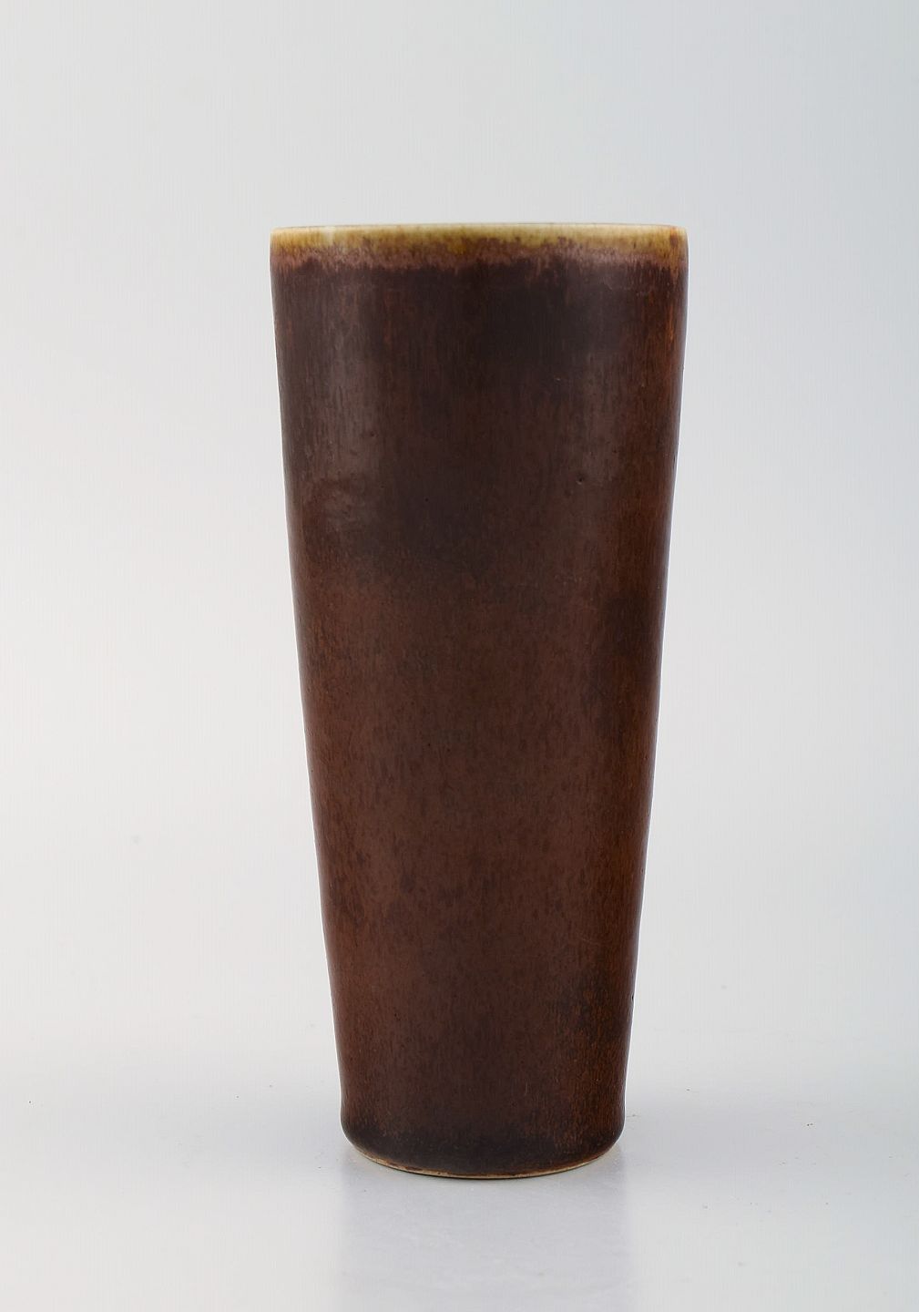 Rörstrand vase i glaseret keramik. Smuk glasur i brune nuancer. 1960'erne.