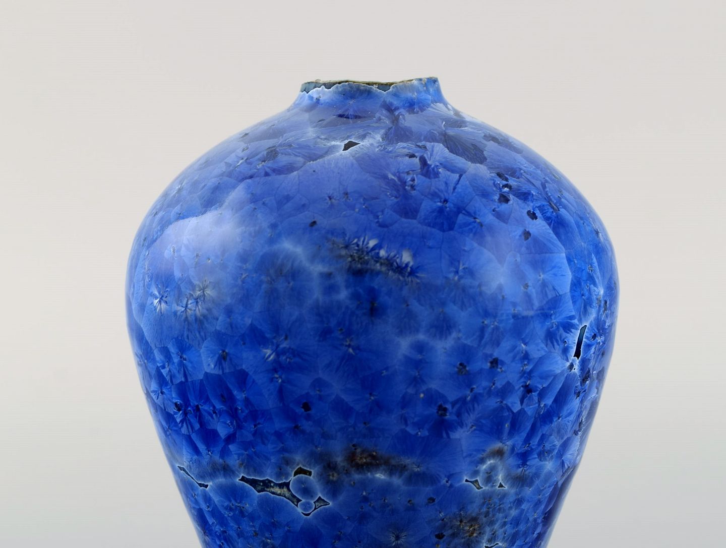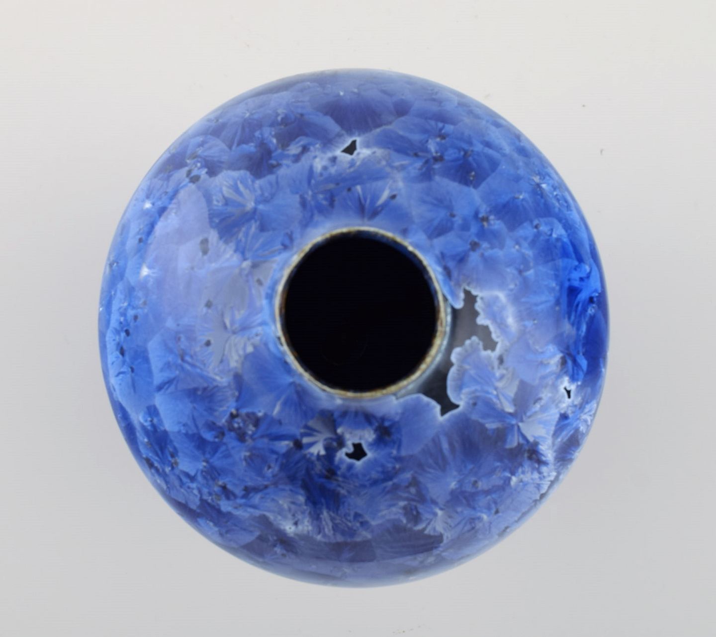 Eli Keller (f.1942), Sverige. Unika vase i glaseret stentøj. Smuk krystalglasur i blå nuancer. 21. Århundrede.