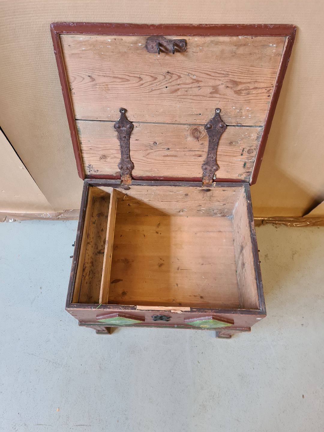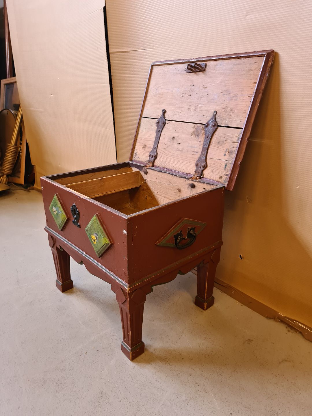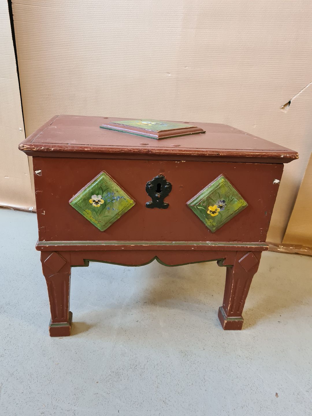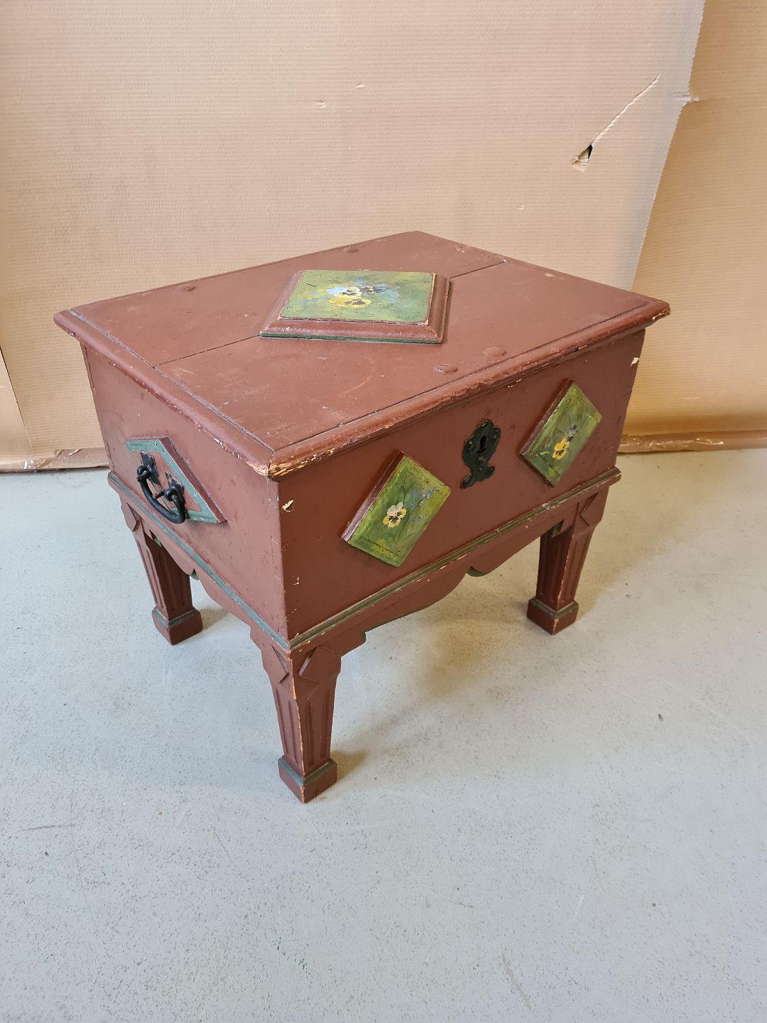 Malet kiste på ben fra 1890erne.