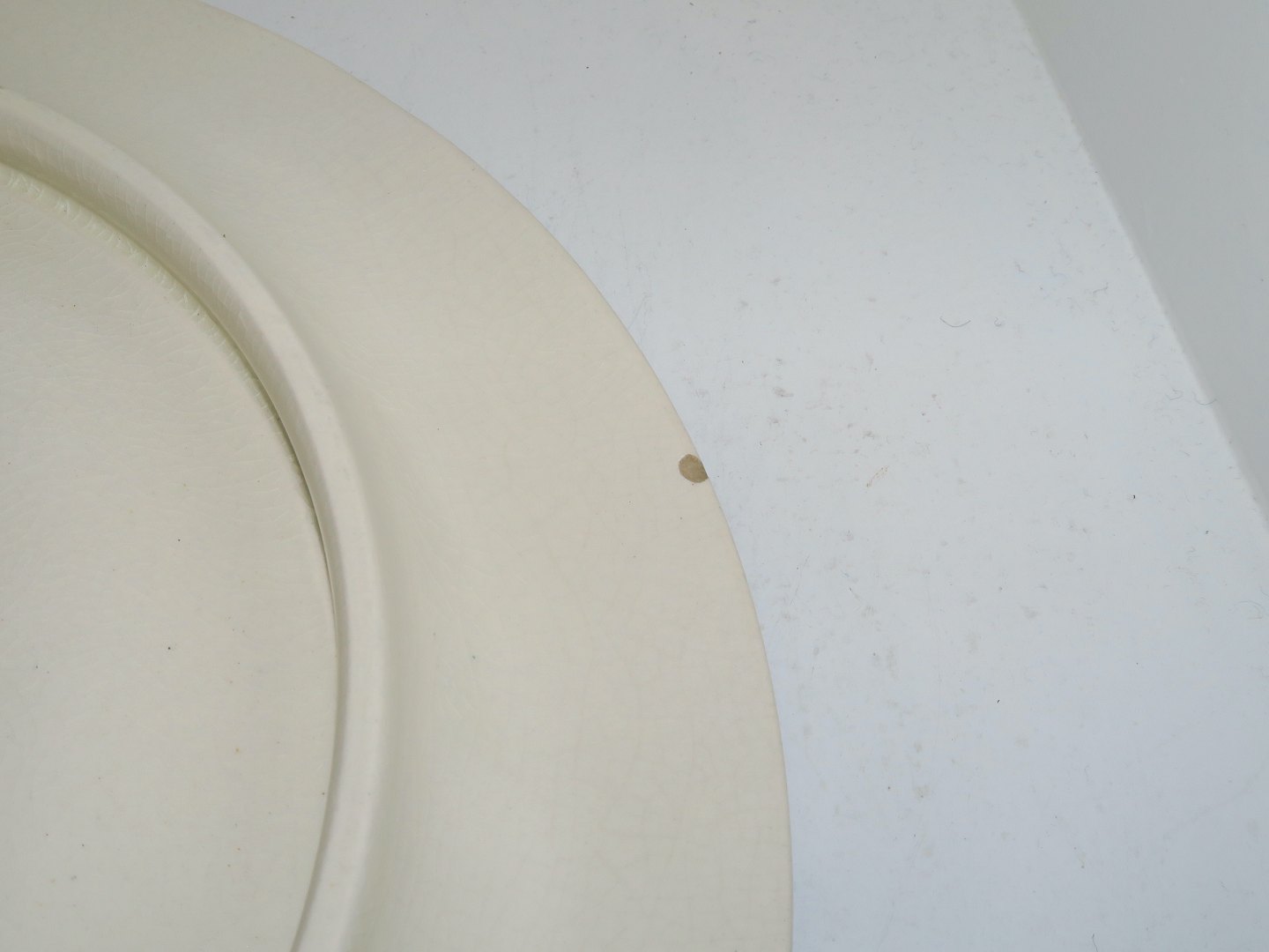 Der er et enkelt skår, som kun ses på bagsiden af platten - se fotos. Ellers perfekt stand uden fejl.