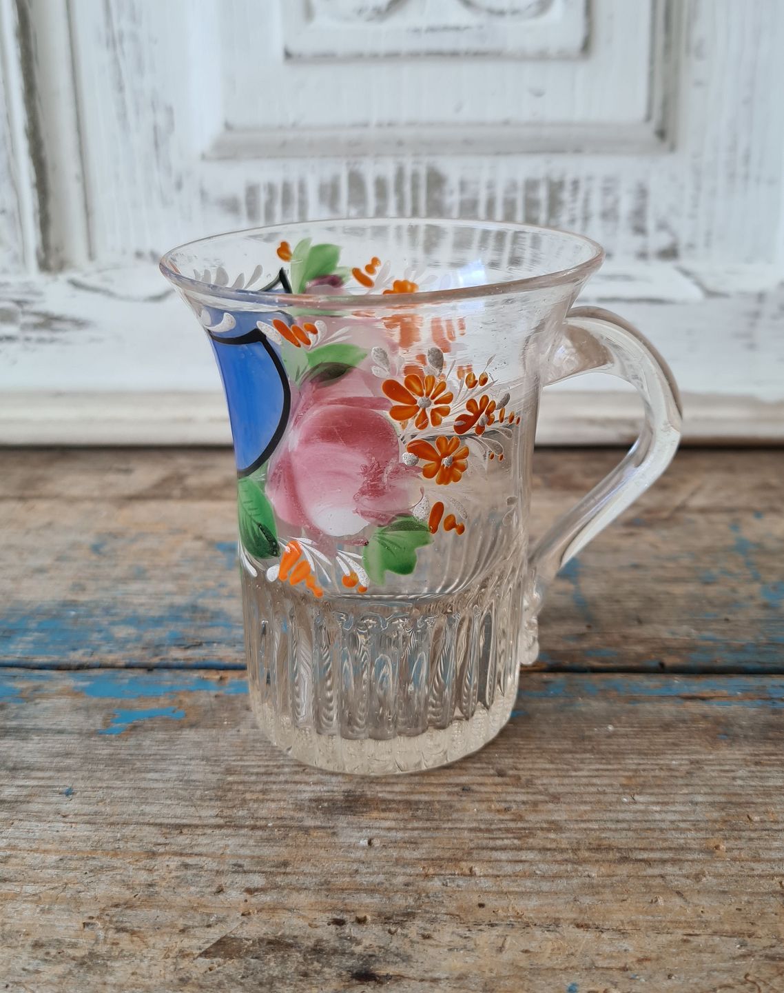 1800tals emalje dekoreret hankekrus med teksten "Jeg gratulere"