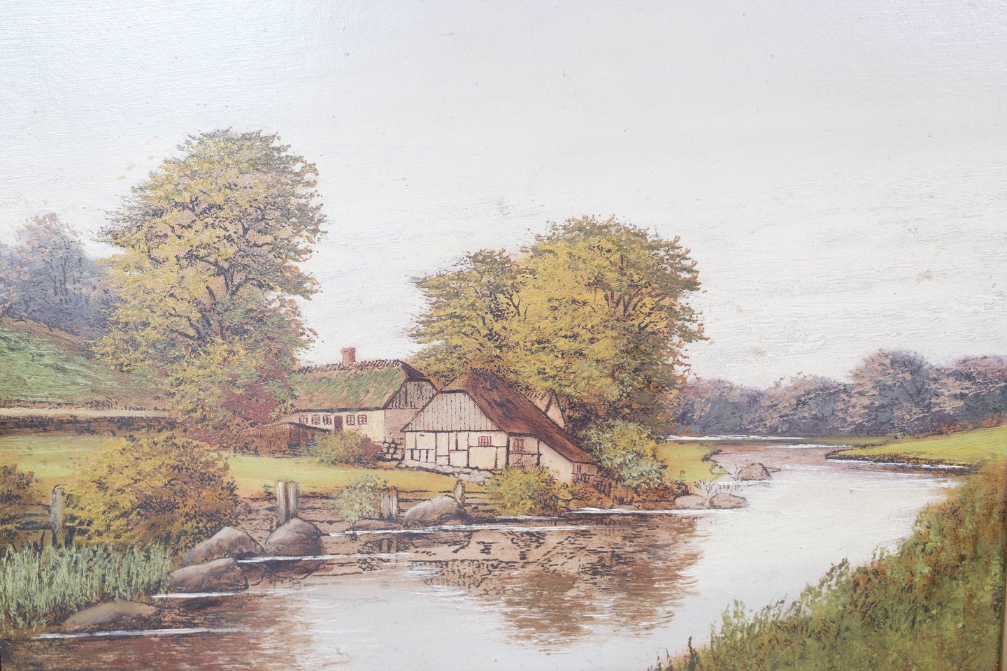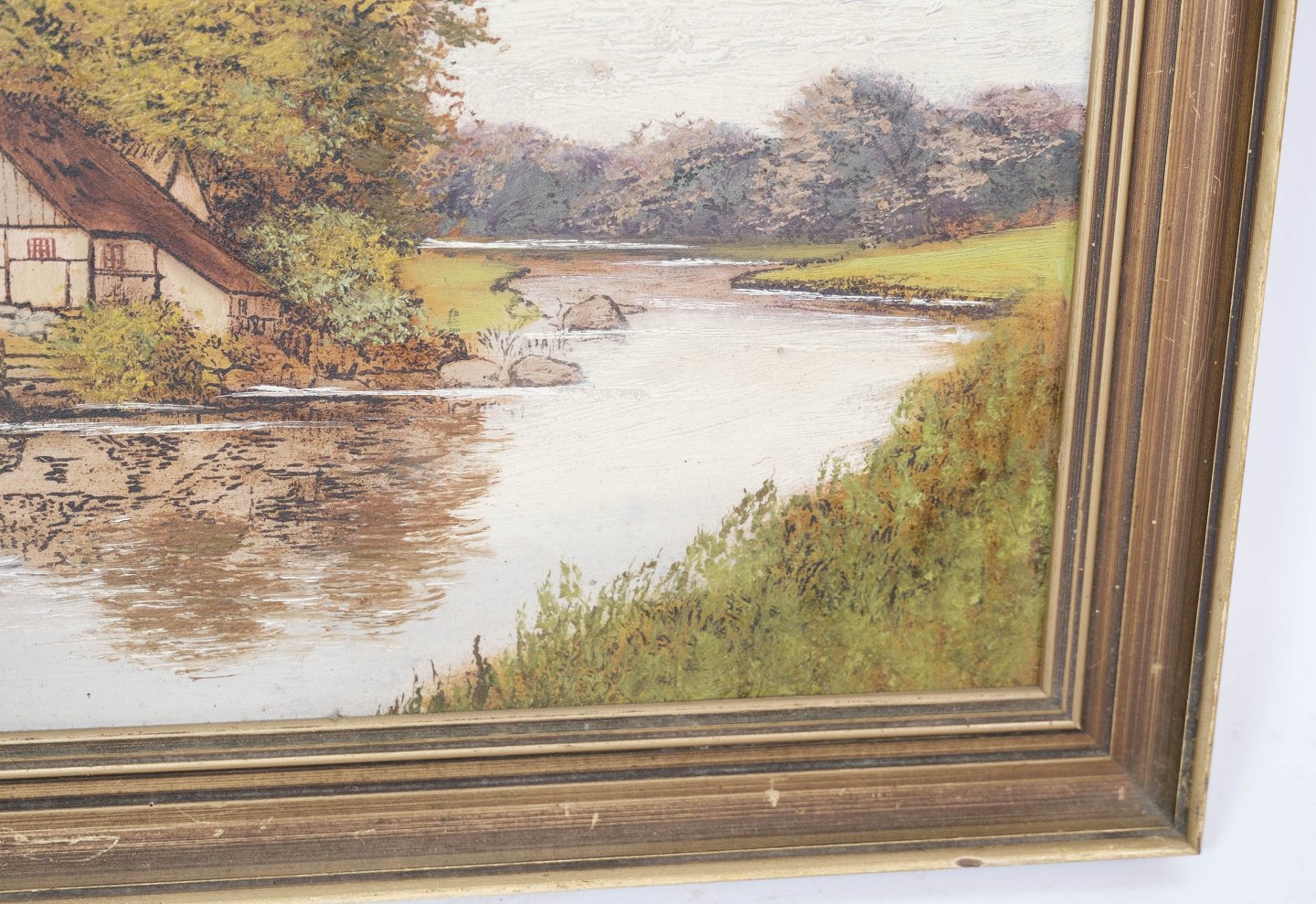 Maleri på lærred med naturmotiv og forgyldt ramme fra 1940erne.