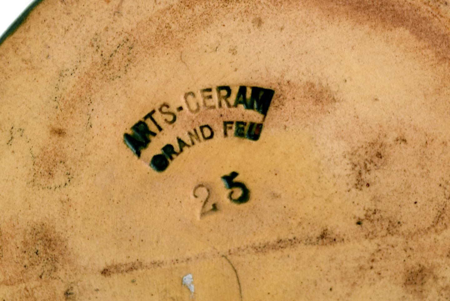 Arts Ceram Grand Feu, Frankrig. Vase / kande i glaseret stentøj. Smuk glasur i guld og grønne nuancer. 1920'erne.