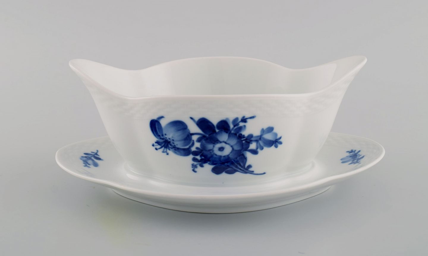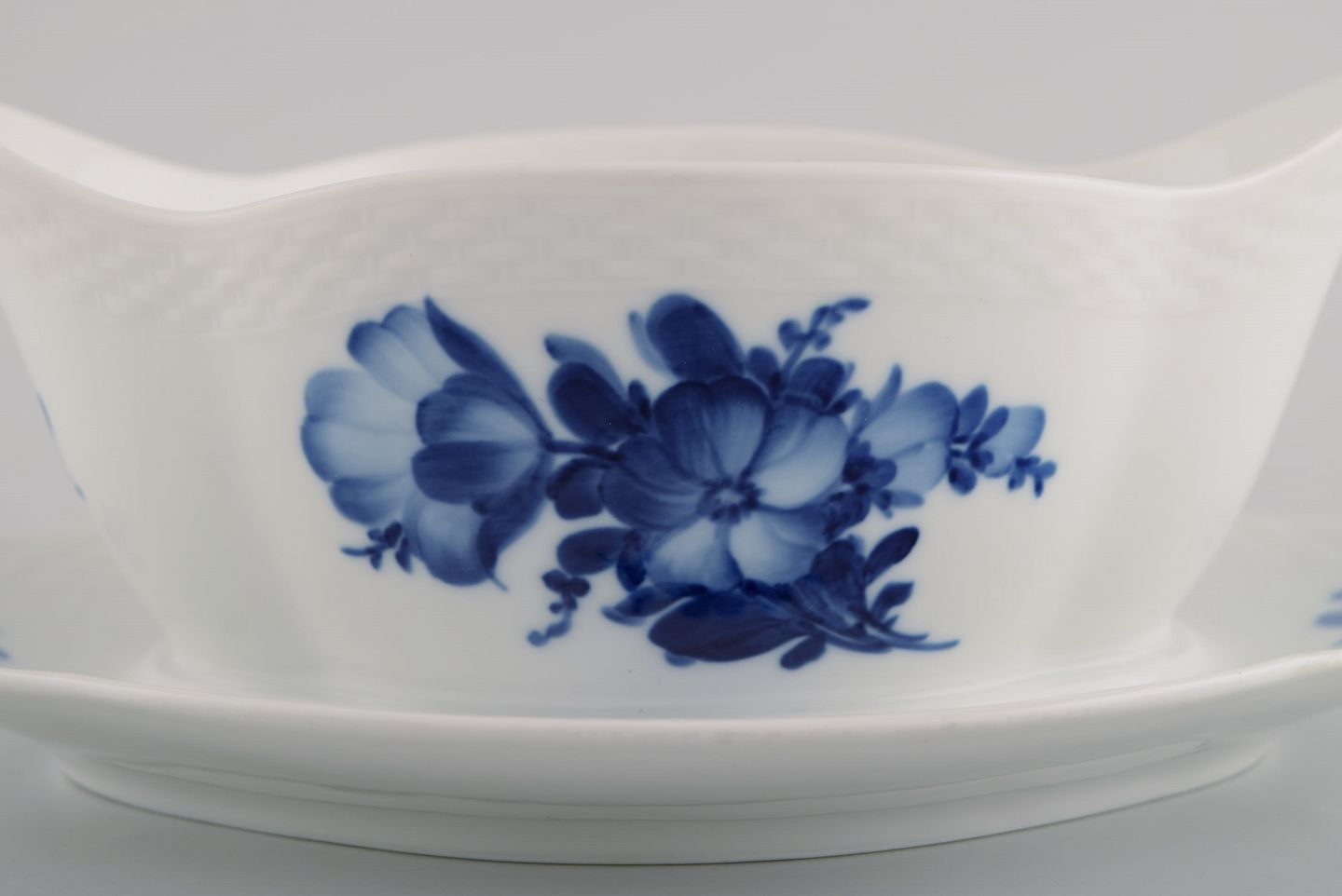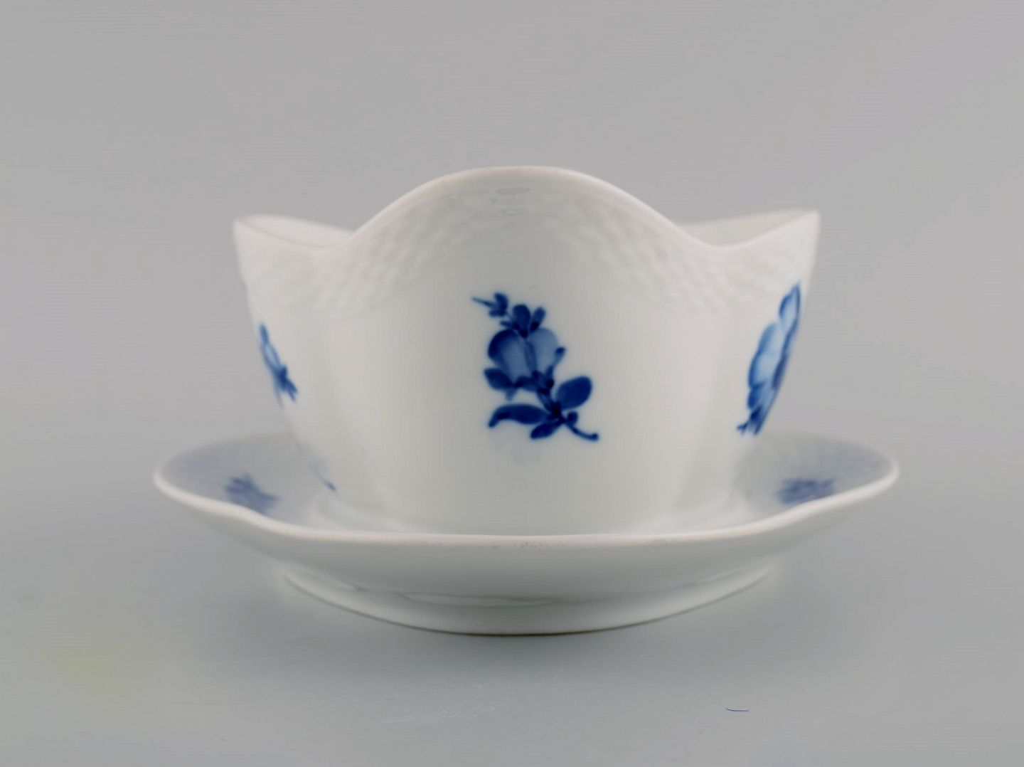 Royal Copenhagen Blå Blomst Flettet sovseskål på fast stand. Modelnummer 10/8159. Dateret 1958.