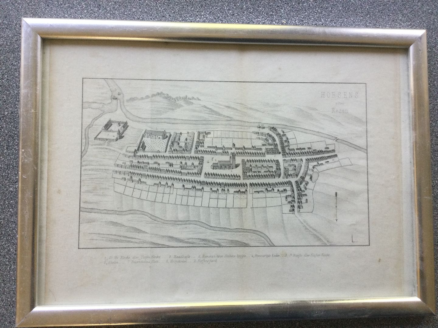 Litografi - Horsens by efter Peder Hansen Resens kobberstik 1677.