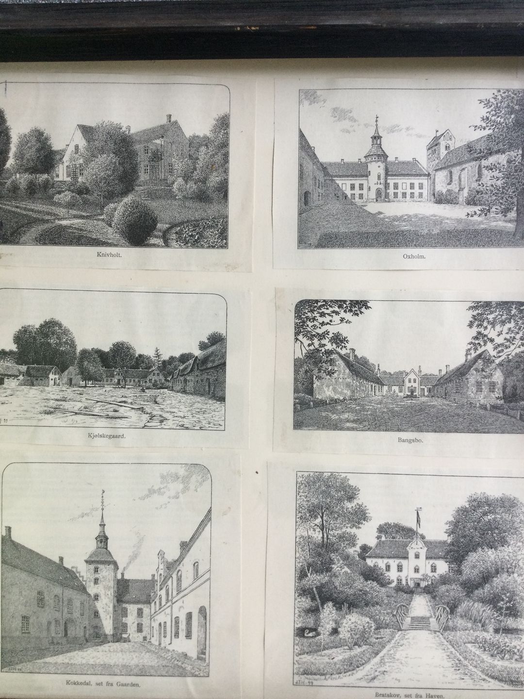 Text available in Danish: 6 små xylografier af Herregårde i Vendsyssel år ca 1900.