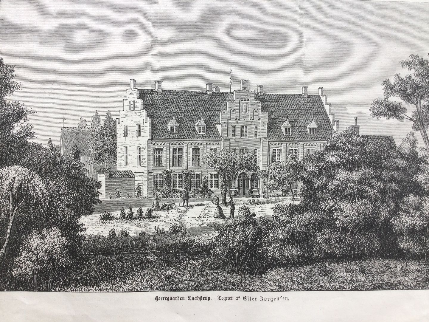 Betegnet - "Herregaarden Knabstrup - Tegnet af Eiler Jørgensen"