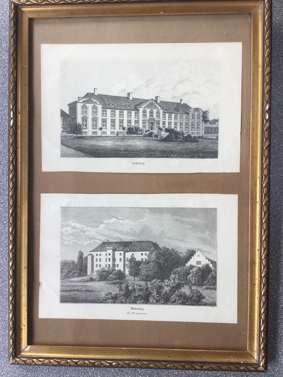 2 litografier i samme ramme - Dragsholm Slot og Lerchenborg Slot.