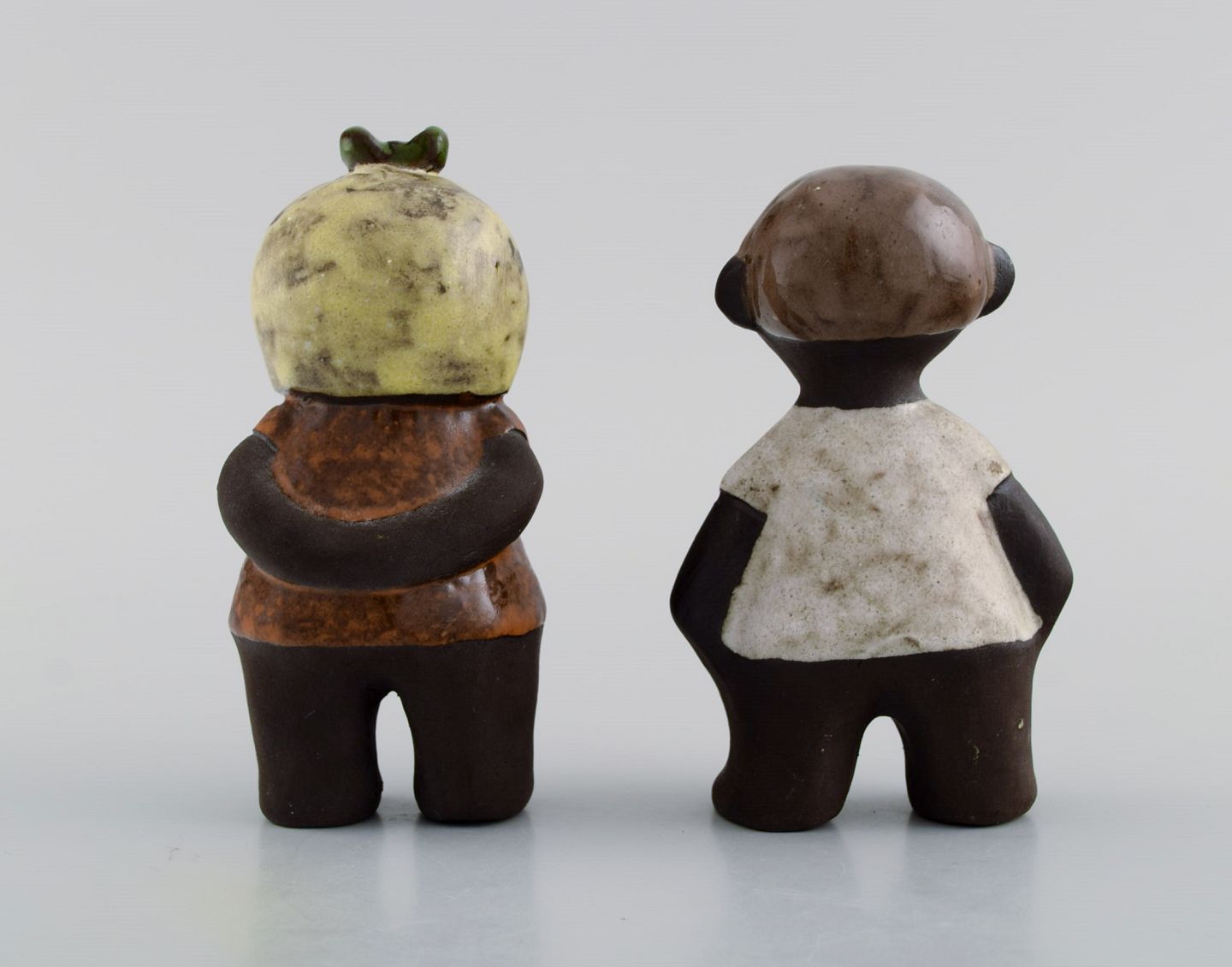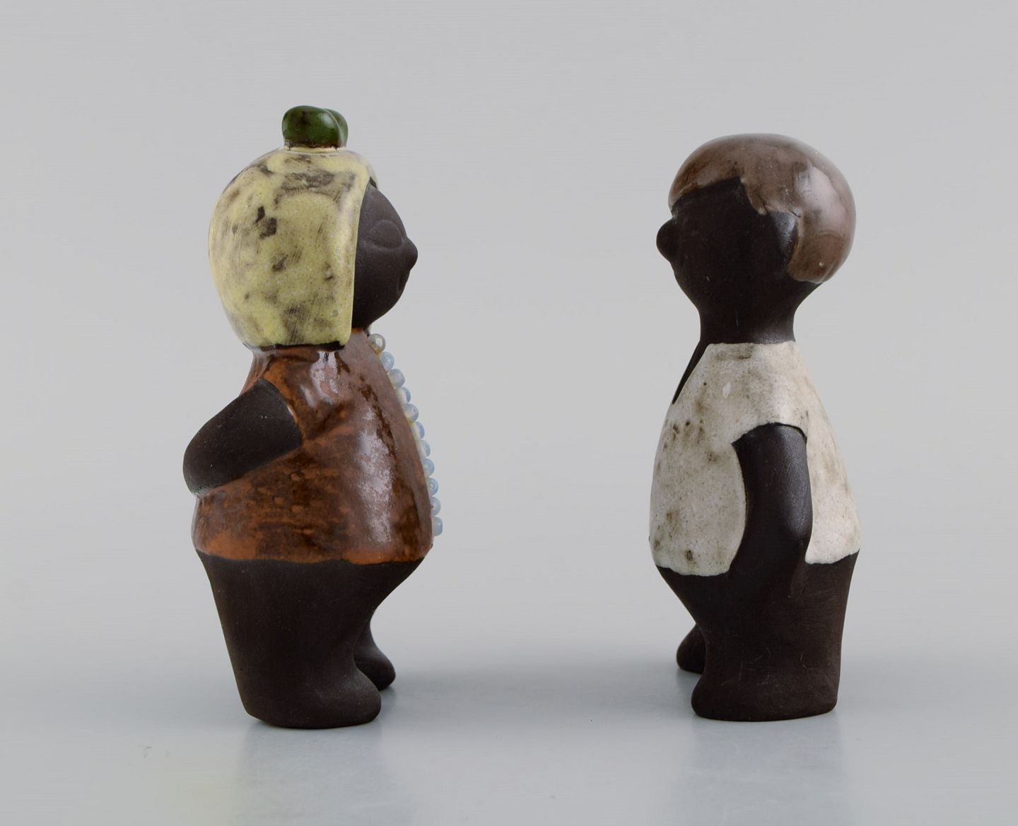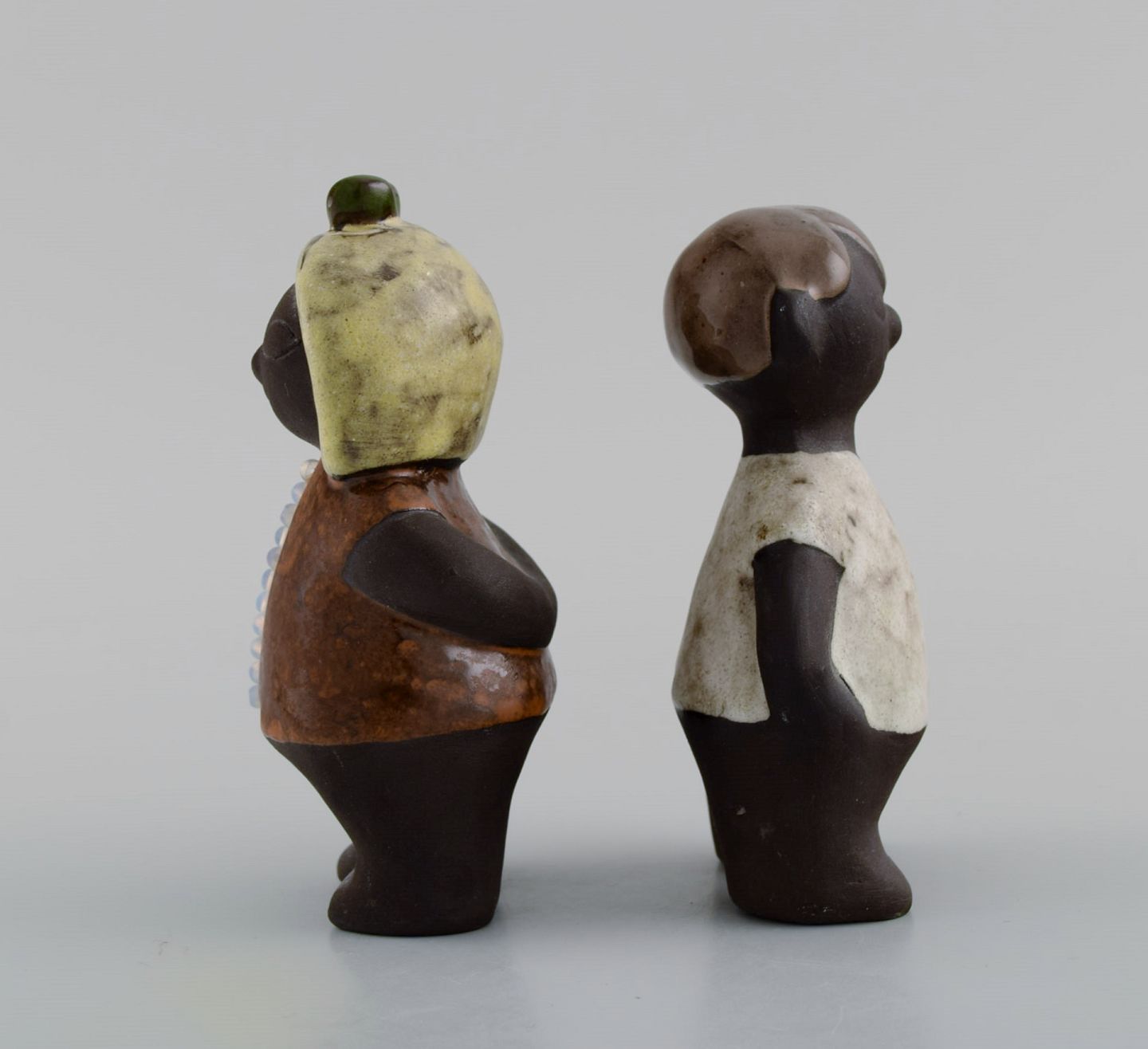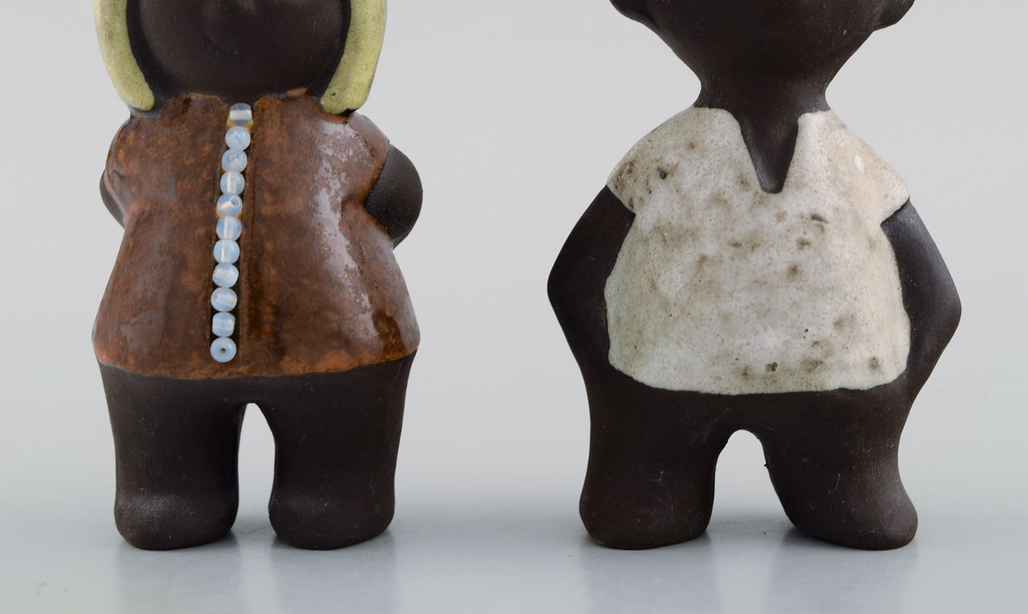 Karl Erik Iwar (1920-2006) for Nittsjö. To figurer i håndmalet glaseret stentøj. Dreng og pige. 1960'erne.