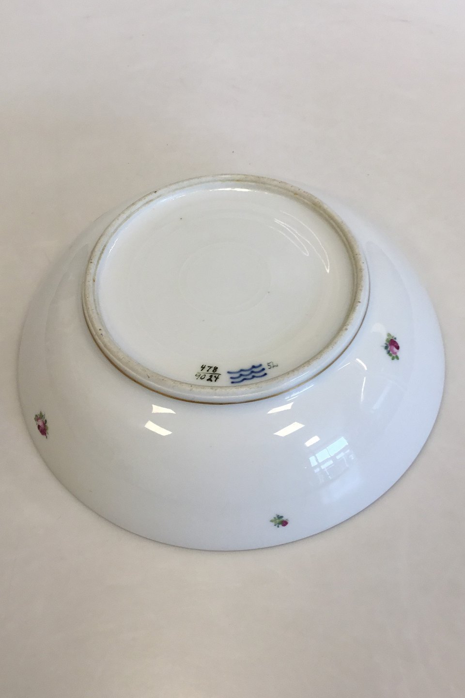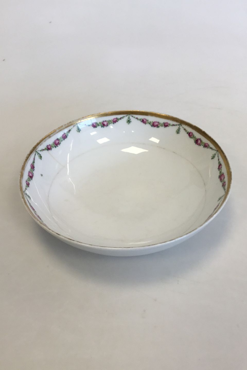 Royal Copenhagen Stel nr. 478 Rosenguirlande med guld Rund Skål No 9024. Måler 18,5cm x 13.5cm (7.28 in x 5.31 in )