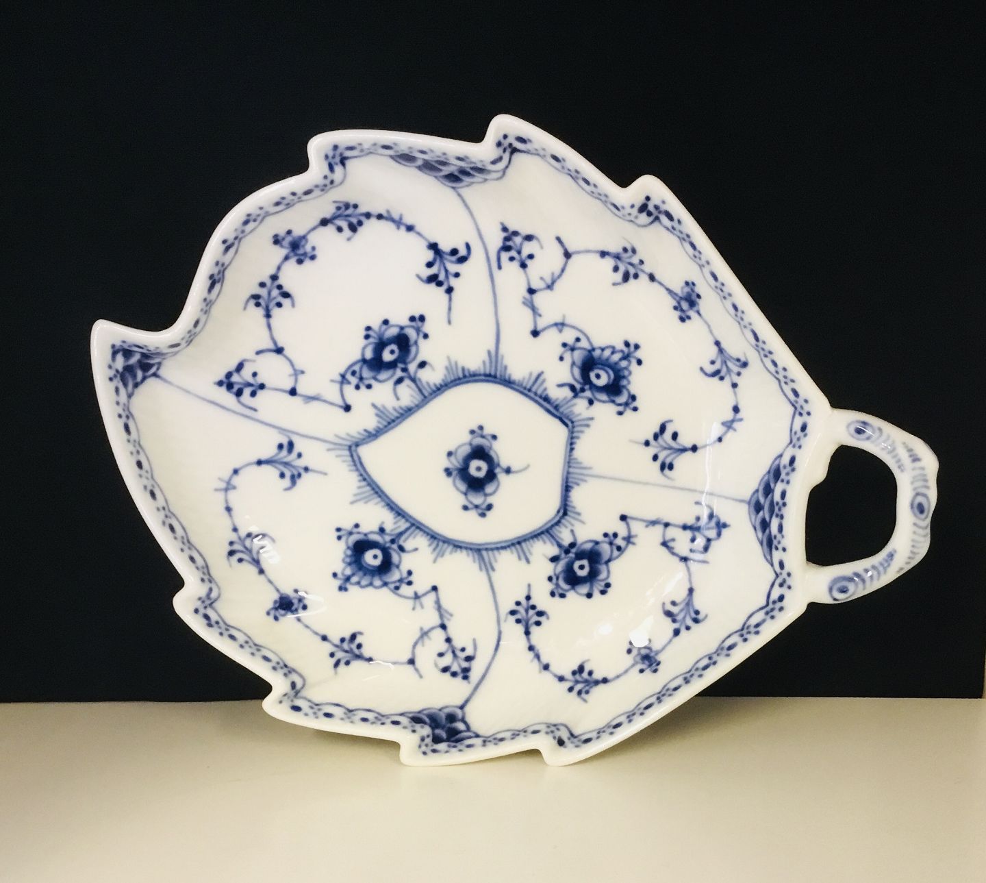 Royal Copenhagen Musselmalet halvblonde Bladfad nr. 548, 23 cm 1.sort i hel og fin stand