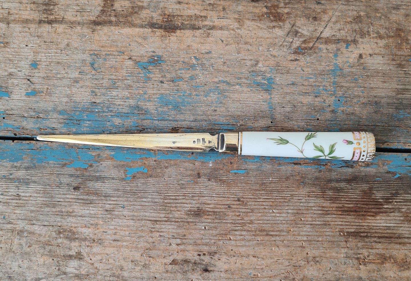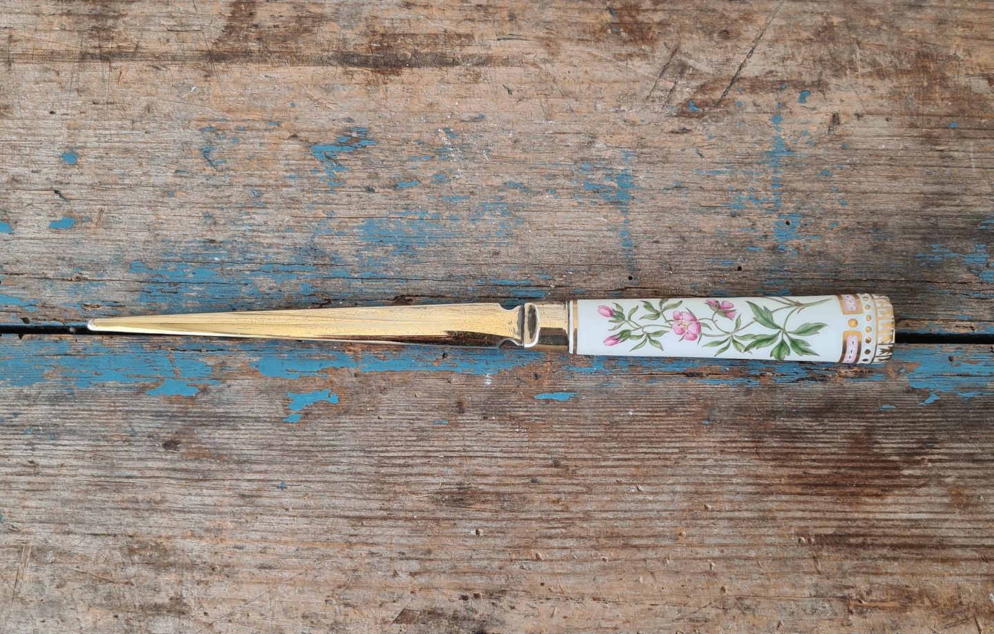 Royal Copenhagen - A.Michelsen Flora Danica brevkniv i forgyldt sølv og porcelæn