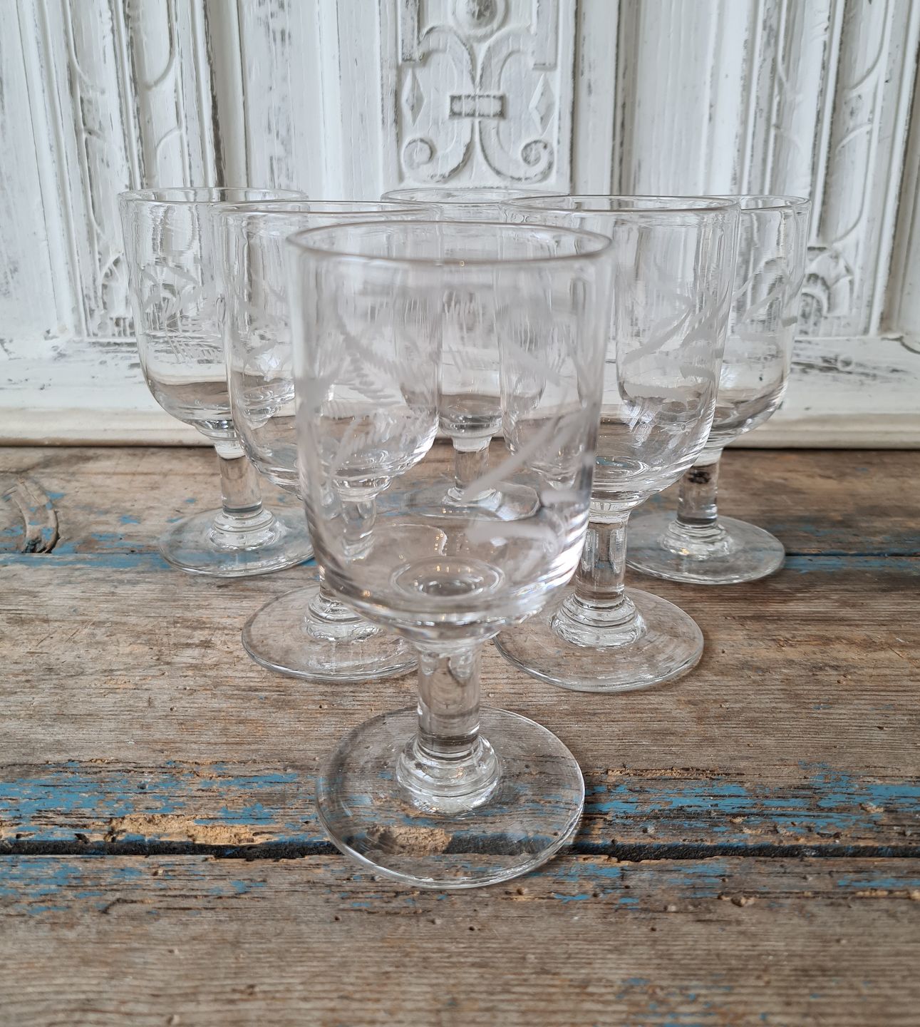 Sæt på 6 franske vinglas med fine slibninger i form af blade