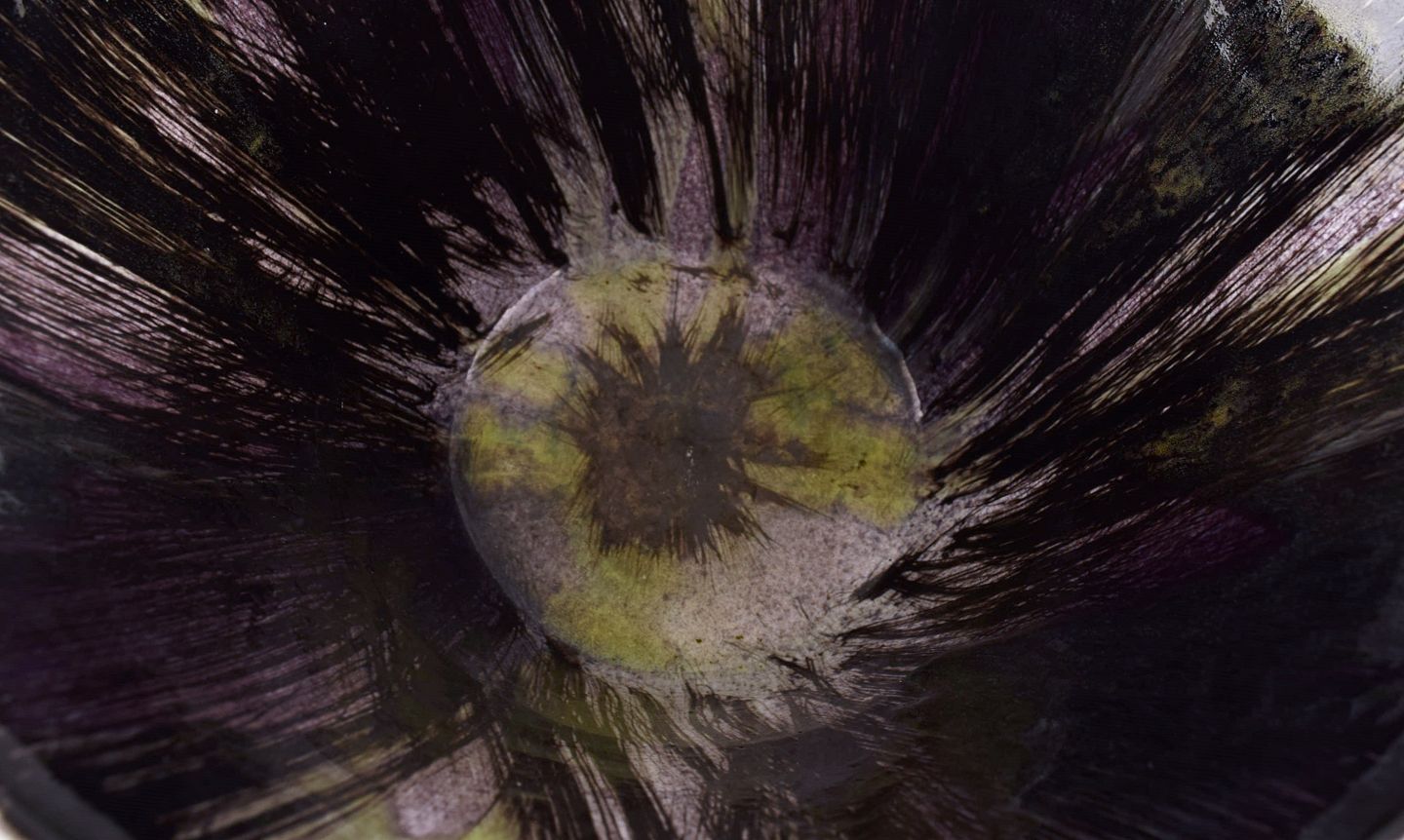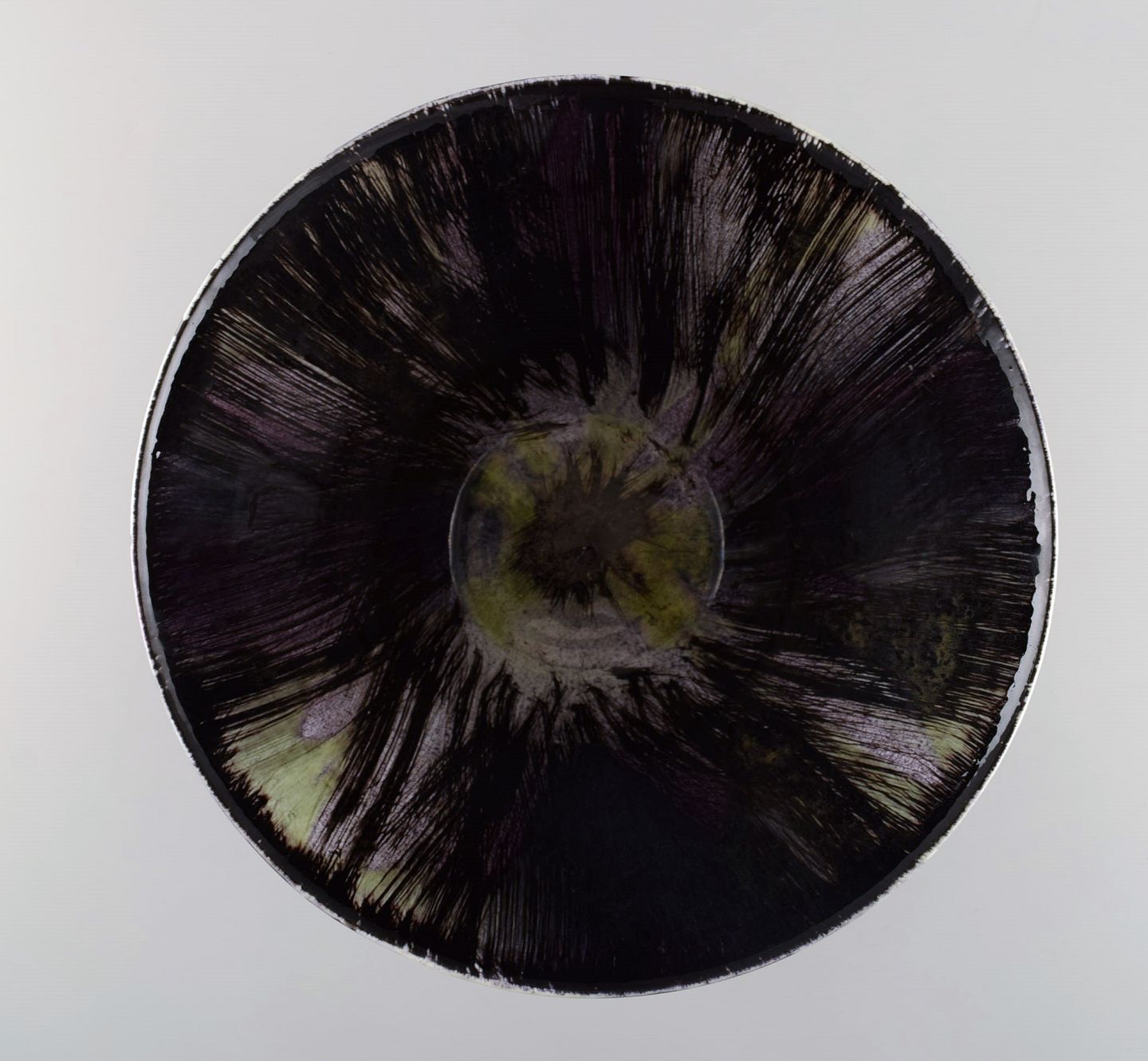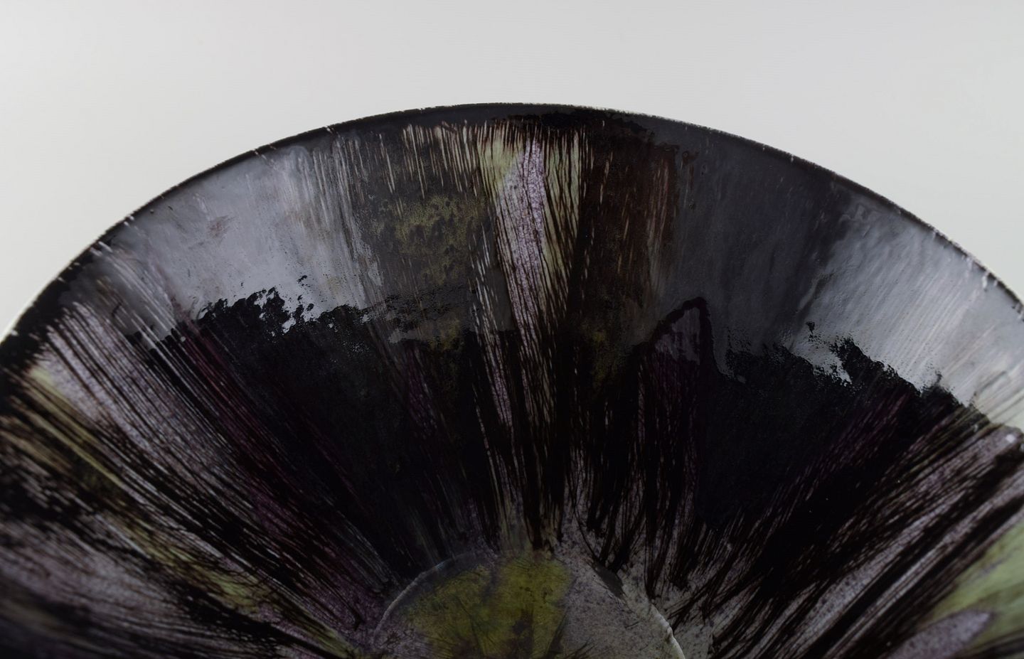 Mari Simmulson (1911-2000) for Upsala-Ekeby. Stor skål i håndmalet glaseret stentøj. Midt 1900-tallet.
